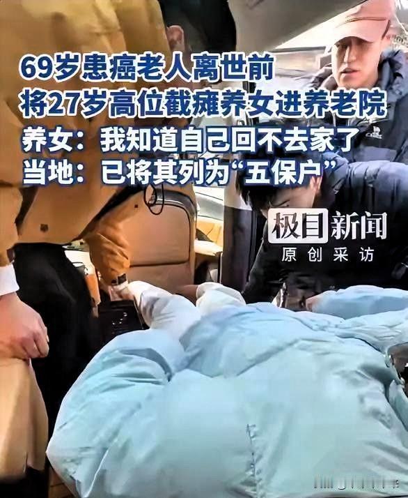 江苏徐州铜山区,69岁的刘姓老人在今年1月3日因癌症离世,留在世间的,还有他照顾了十多年的27岁瘫痪养女。这份跨越血缘的陪伴,终究没能抵过命运的安排。 老人查出癌症后,放心不下瘫痪在床的养女,便将她送进了养老院。那时的老人还瞒着养女,只说自己只是去做个小手术,等治好了病,就来接她回家。 老人出院后,也住进了同一家养老院。每天睡醒,他第一件事就是去找养女,而病重的他早已吃不下东西,养女便守在身边,帮他吃药、喂鼻饲营养液,这是女孩觉得自己能为父亲做的一点事。 女孩的姑姑不识字,却也日日跑来照料老人,女孩看着这一切,满心都是无力,她想帮父亲,想留住父亲,却不知道该做些什么。 这场让女孩失去行动能力的车祸,发生在2014年,从那时起,高位截瘫的她便一直由养父照顾。十余年的时光里,老人把所有的温柔都给了养女。 他自己省吃俭用,不舍得吃也不舍得穿,却给女孩买了电脑,哪怕最初的电脑配置并不好,却陪女孩熬过了无数难熬的日子。去年7月,老人又给她换了一台新电脑,这成了家里最值钱的物件。 家里的其他房间破旧不堪,只有女孩的房间贴了墙纸、装了空调,成了家里最温馨的角落。老人常年捡别人的旧衣服穿,却从来没让女孩缺过一件新衣服。 27岁的刘女士在视频里细数着养父的好,也说出了心底的思念:“你去了很远的地方,远到我要走完这一生才能和你相遇,那时候你一定不要食言,我等你来接我。” 她告诉极目新闻记者,父亲是个没什么文化、也不擅表达的老实人,送她去养老院时,父亲甚至不知道自己的真实病情,真的以为只是一场小手术。而父亲这辈子最大的心愿,就是希望即便自己不在了,她也能好好活着,照顾好自己。 幸运的是,刘女士的处境被各方看在眼里,也有不少善良的网友专程来看望她。徐州市残联工作人员介绍,女孩残疾后,相关部门就为她办理了重度残疾人生活补贴、护理补贴,也为她办了低保。 2025年12月,民政部门了解到父女二人的情况后,将他们列为了“五保户”。如今老人离世,残联也为刘女士安排了心理辅导老师,在心理上给予她关心和陪伴。 刘女士说,她知道自己或许再也站不起来了,但心里还有个小小的愿望,希望能通过治疗坐上轮椅,慢慢实现生活自理,不辜负养父的期盼。