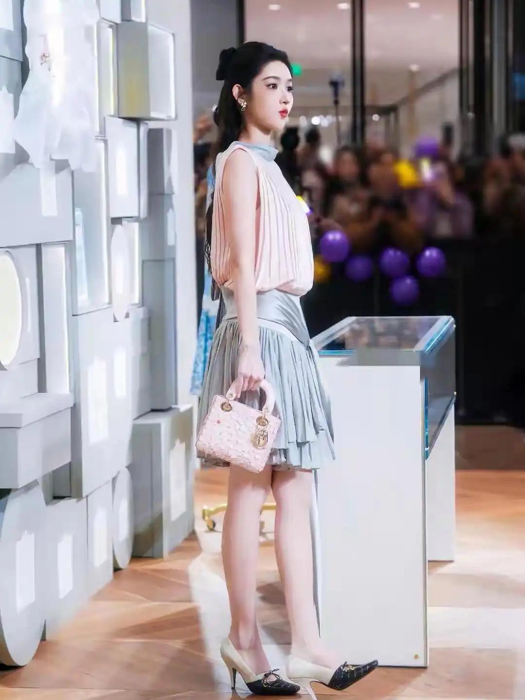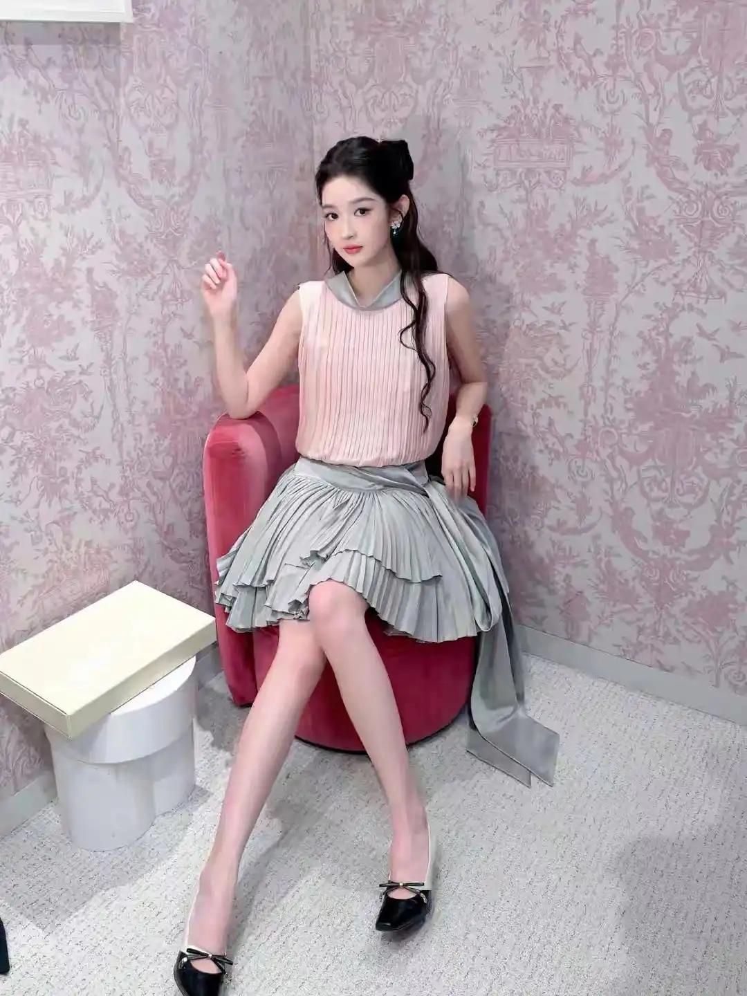 王玉雯今日出席Dior线下活动,穿粉色套裙扎蝴蝶结造型好惊艳