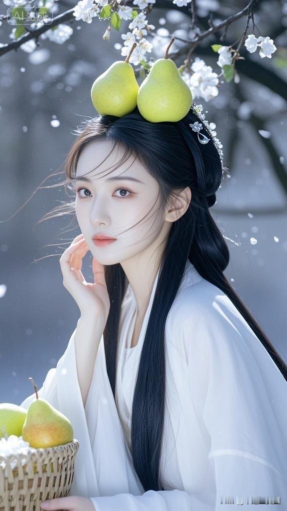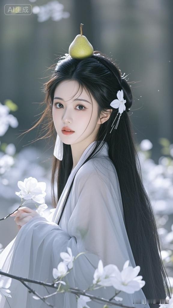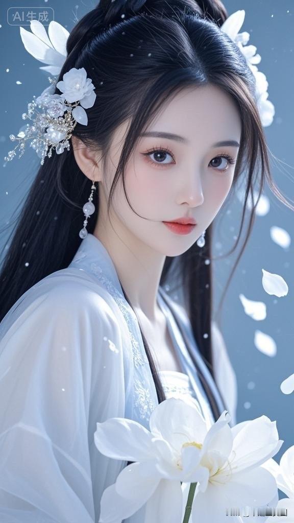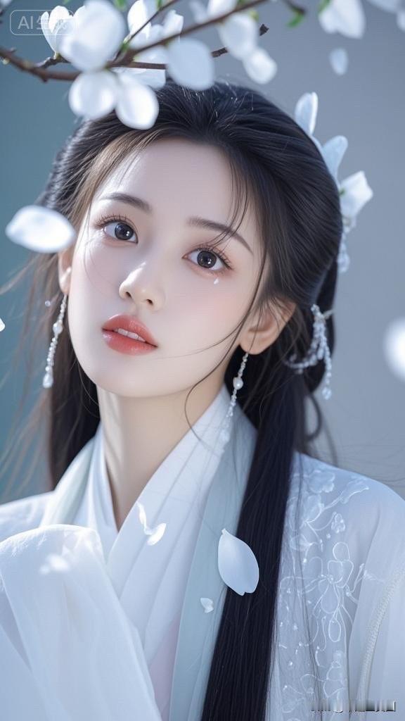 古风少女,黑纱飘逸,粉花点缀,如梦如幻。