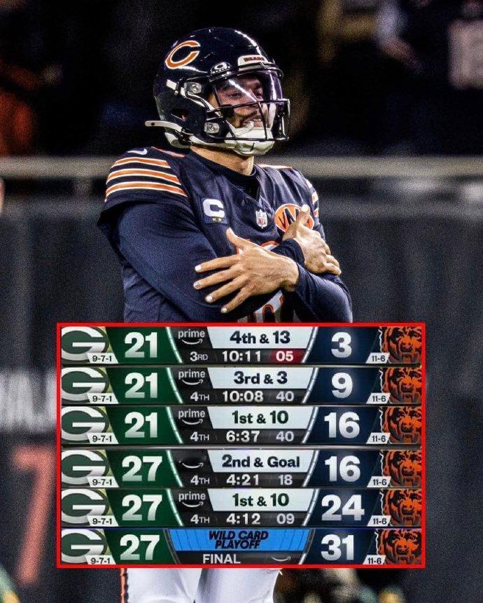 速效救心丸告急!芝加哥熊末节逆转太燃了 不到第四节绝不发力,最后两分钟才掀翻对手!芝加哥熊这场球堪称本赛季最疯狂对决,全程高能到让人心脏骤停。 一路慢热挖坑,末节突然觉醒上演绝地反击,无数次失误险象环生,最终拼出热血胜利。不完美的过程,恰恰是橄榄球最动人的魅力!