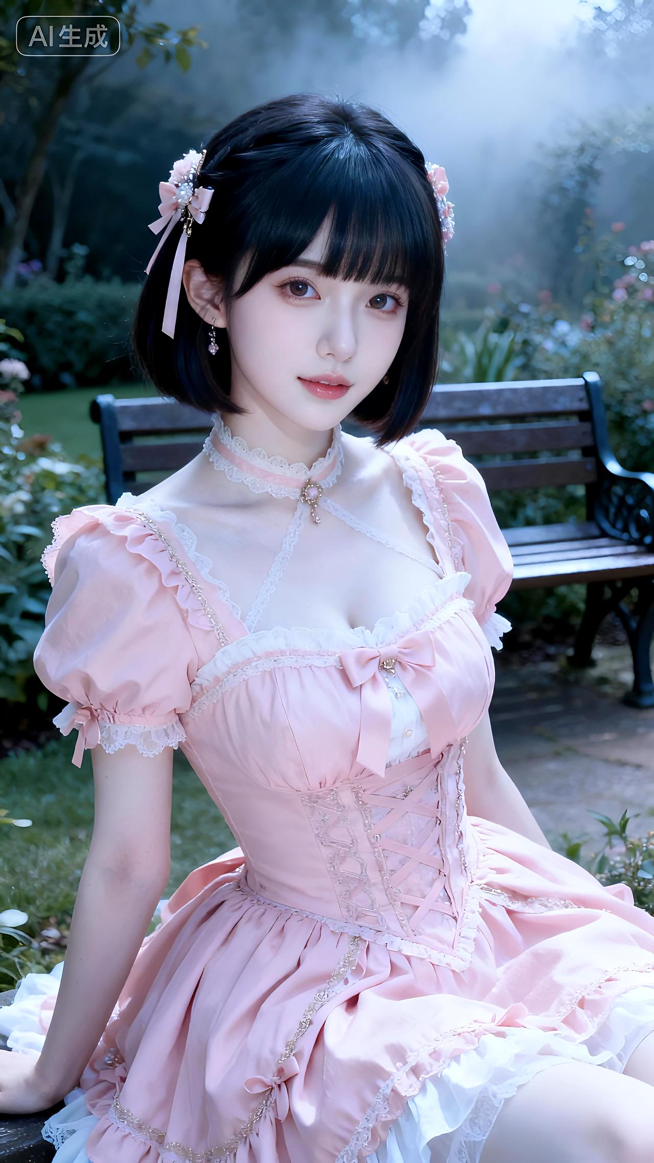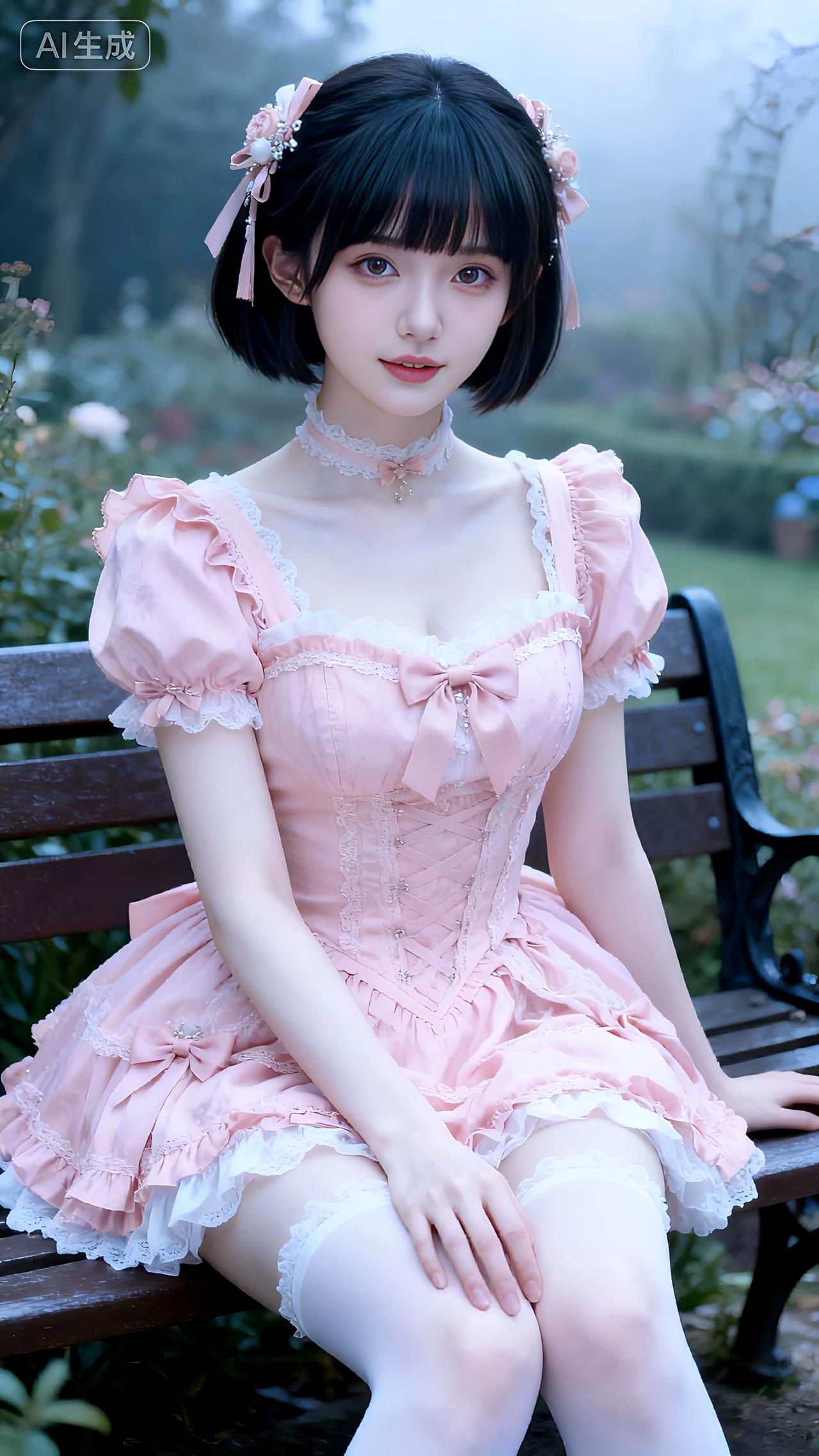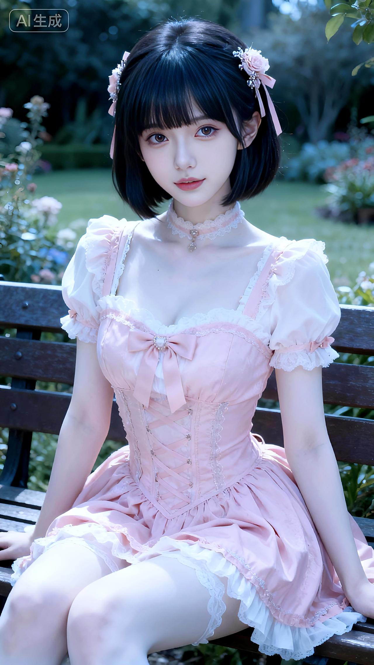 坐在花园里的洋娃娃,这粉色裙子太出片啦。