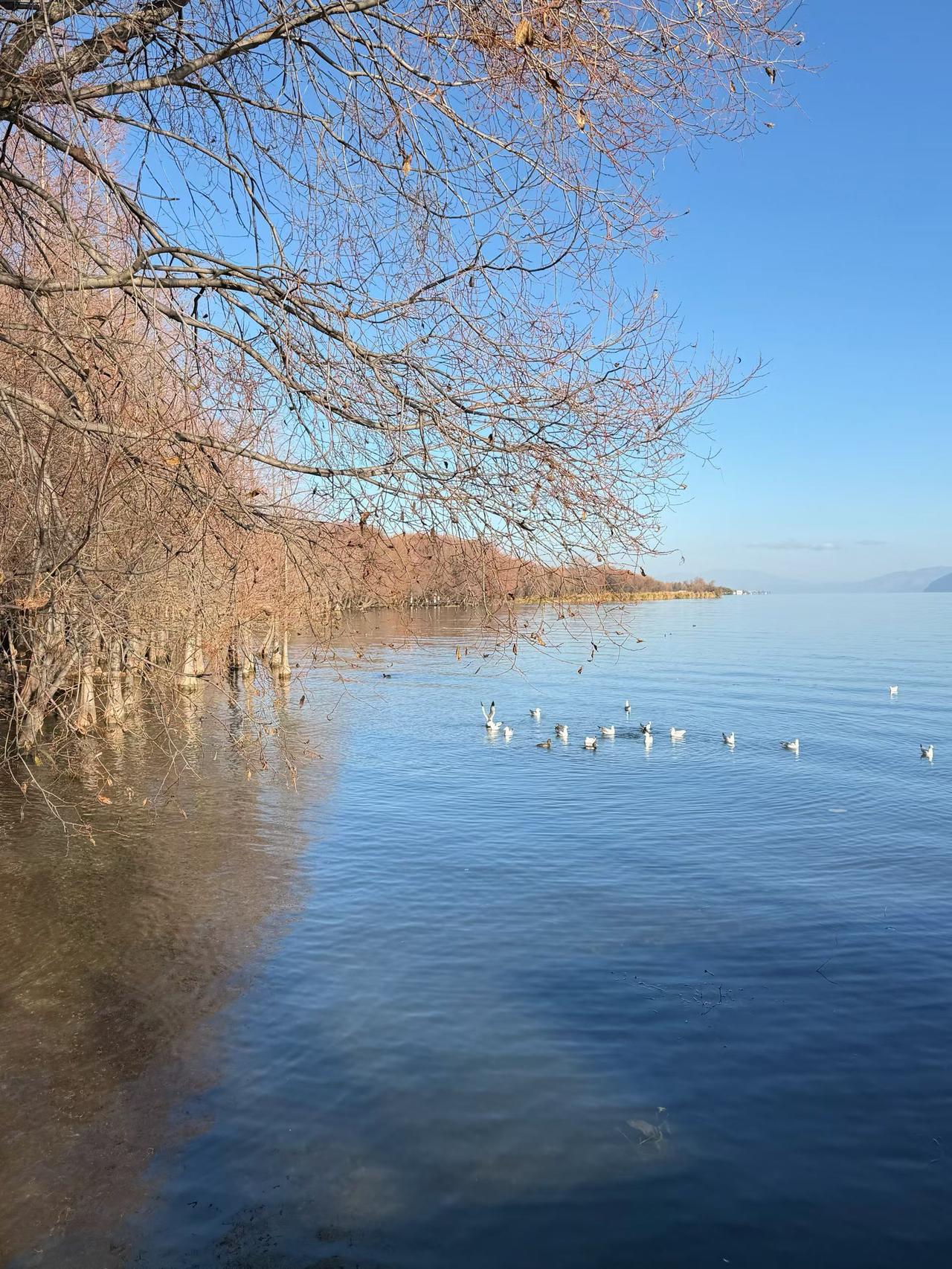 冬天的洱海,海鸥来串门啦 冬天一到,大理洱海就成了海鸥的快乐老家!今天去洱海边溜达,一眼就瞅见水面上飘着一群白乎乎的小家伙,扑腾着翅膀在水里找食儿,那模样憨得很。 岸边的树叶子都落光了,光秃秃的枝桠衬着瓦蓝瓦蓝的天,洱海的水也显得更清了。海鸥一点不怕人,你往水边走走,它们还会歪着脑袋看你,偶尔扑棱着翅膀从头顶飞过去,翅膀扇动的风都能感觉到。 坐在石头上看它们游来游去,晒着暖呼呼的太阳,整个人都懒洋洋的。原来冬天的洱海,因为这群小海鸥,一点都不冷清,反倒热闹又暖心。 大理洱海 洱海