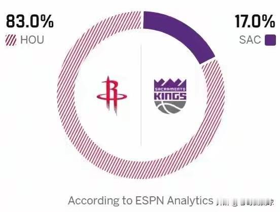 ESPN又在吹嘘伪强队火箭了!明天火箭将会在客场挑战国王,今天ESPN对于明天这场比赛进行了一番预测,结果真是让人瞠目结舌,ESPN竟然预测火箭的胜率高达83%,而国王的胜率仅有可怜的17%。 作为当今NBA最著名的伪强队,ESPN真是太能吹嘘火箭了,在我看来,既然火箭能够连续两场比赛输给开拓者,那么火箭当然有理由输给国王,何况明天杜兰特要面对的是他这辈子最对不起的兄弟威斯布鲁克。