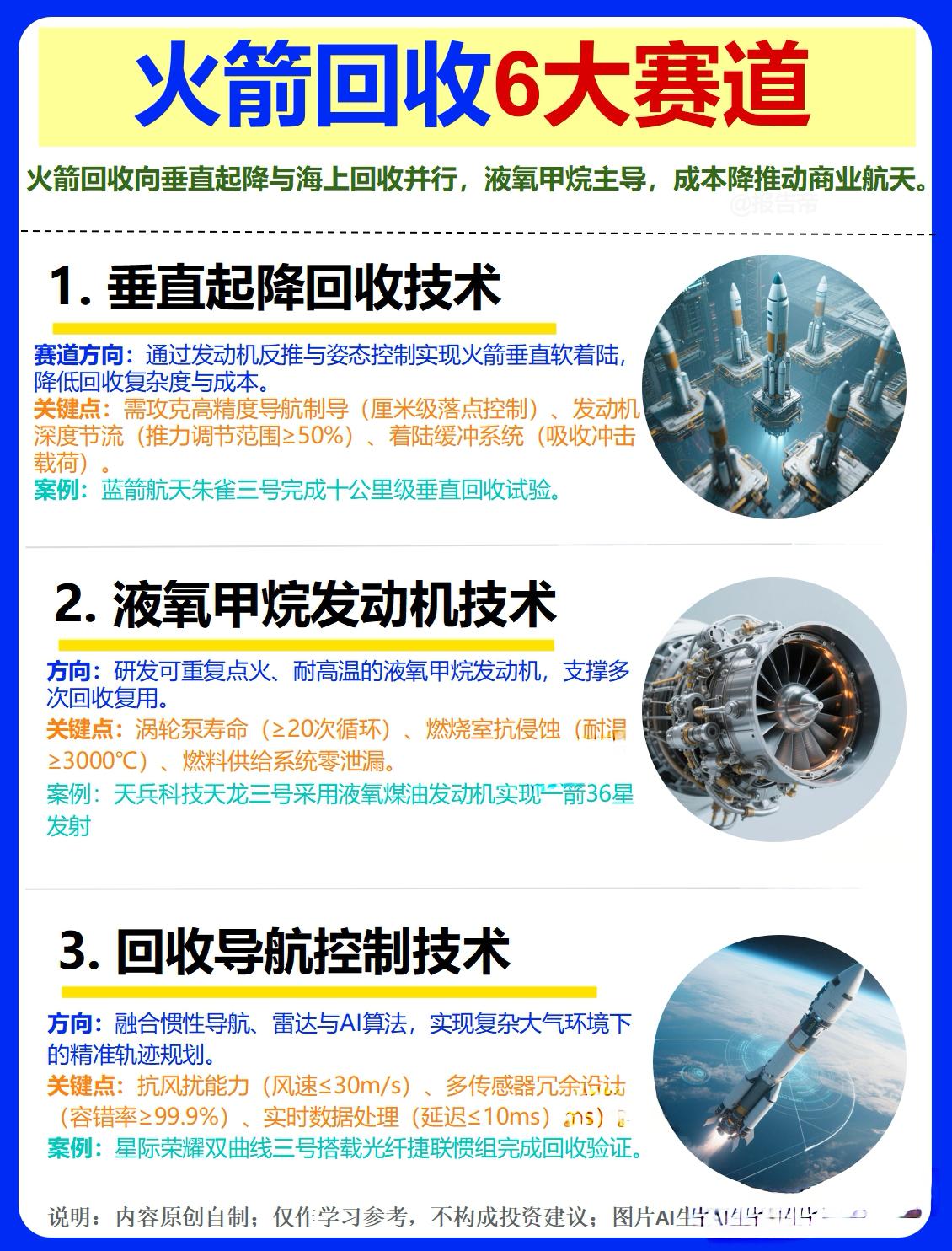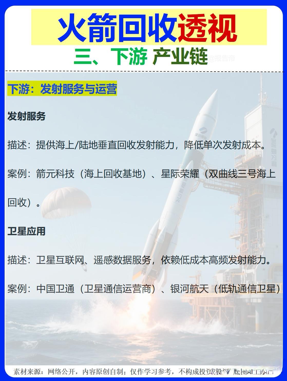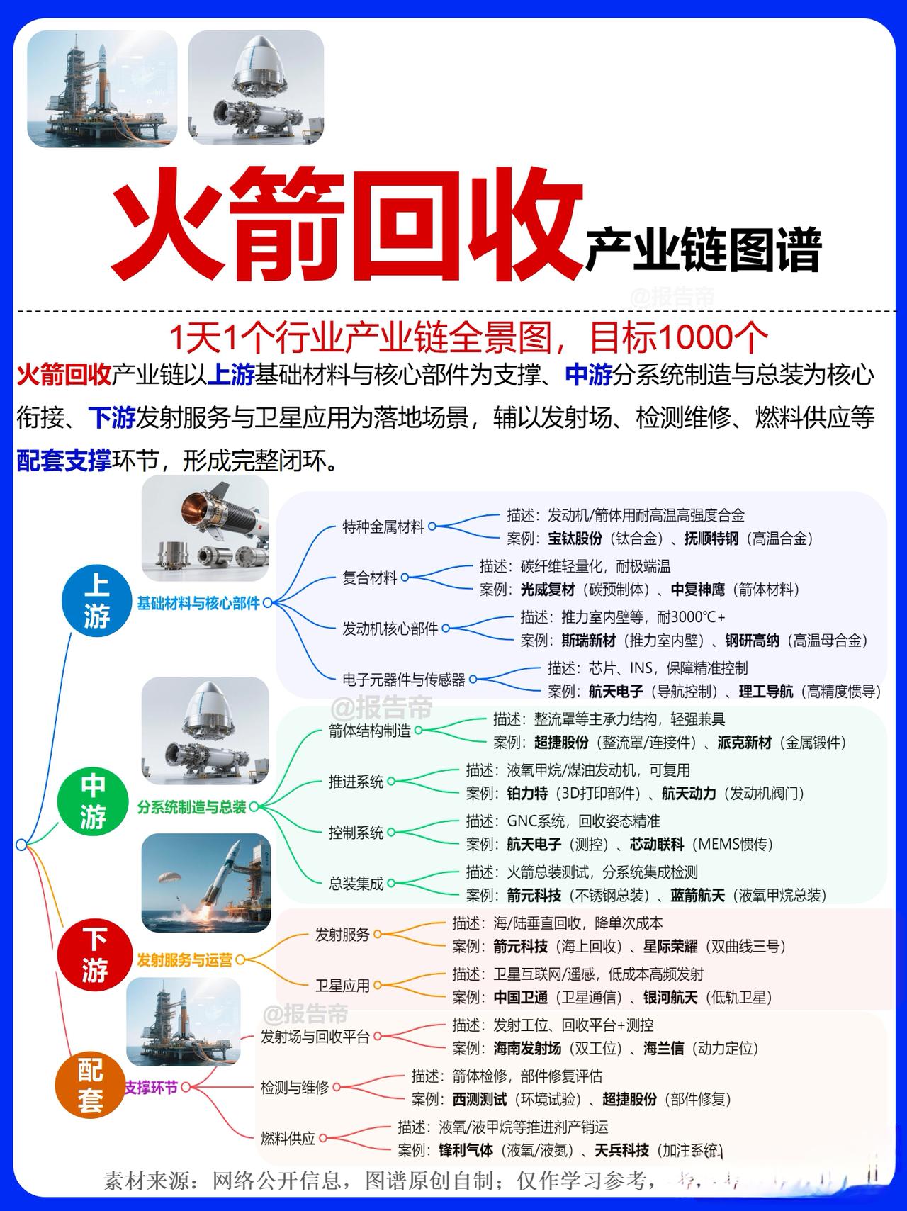 火箭重生!近日,国内首个海上回收复用火箭基地在杭州钱塘区正式开工! 火箭回收不是发射完就扔的 “一次性操作”,而是让箭体、发动机等核心部件 “落地重生”。靠可重启发动机 “刹车”、栅格舵精准导航、着陆腿平稳承接,把昂贵的航天装备变成能重复使用的 “太空工具”,核心就是大幅降低发射成本。 商业航天、卫星制造、火箭发射、航空装备与材料,相关深度内容 1、【现状】 全球赛道上,SpaceX早已靠猎鹰9号实现常态化回收,国内则是 “国家队” 与民营企业双轨发力。朱雀三号、长征十二号甲相继尝试入轨回收,虽有失利但积累了关键经验,政策、资本也持续加码,多样回收方案正在逐步落地,太空探索的 “性价比革命” 已在路上。 2、【深度】 本文的精简源于“产业链短图文”风格,但洞察的深度一如既往。
