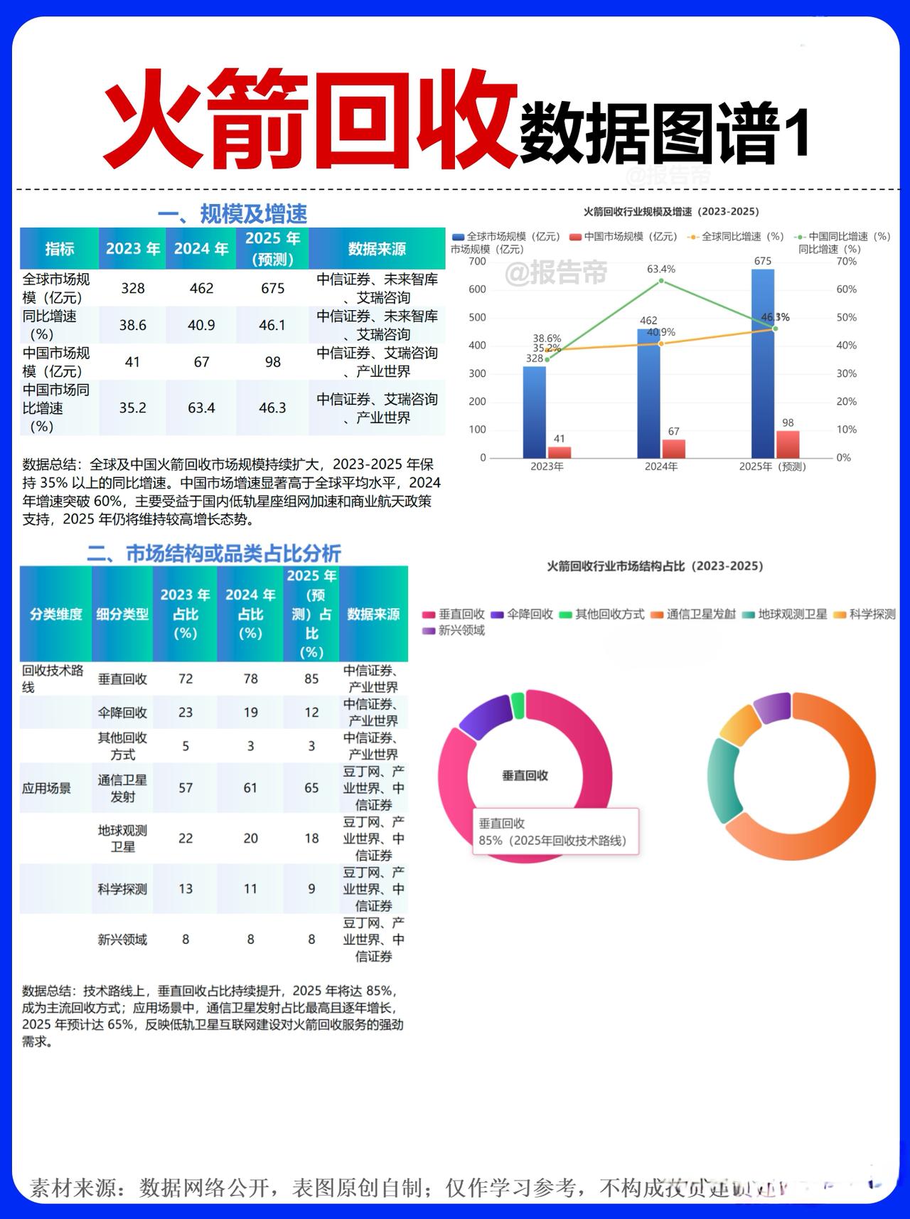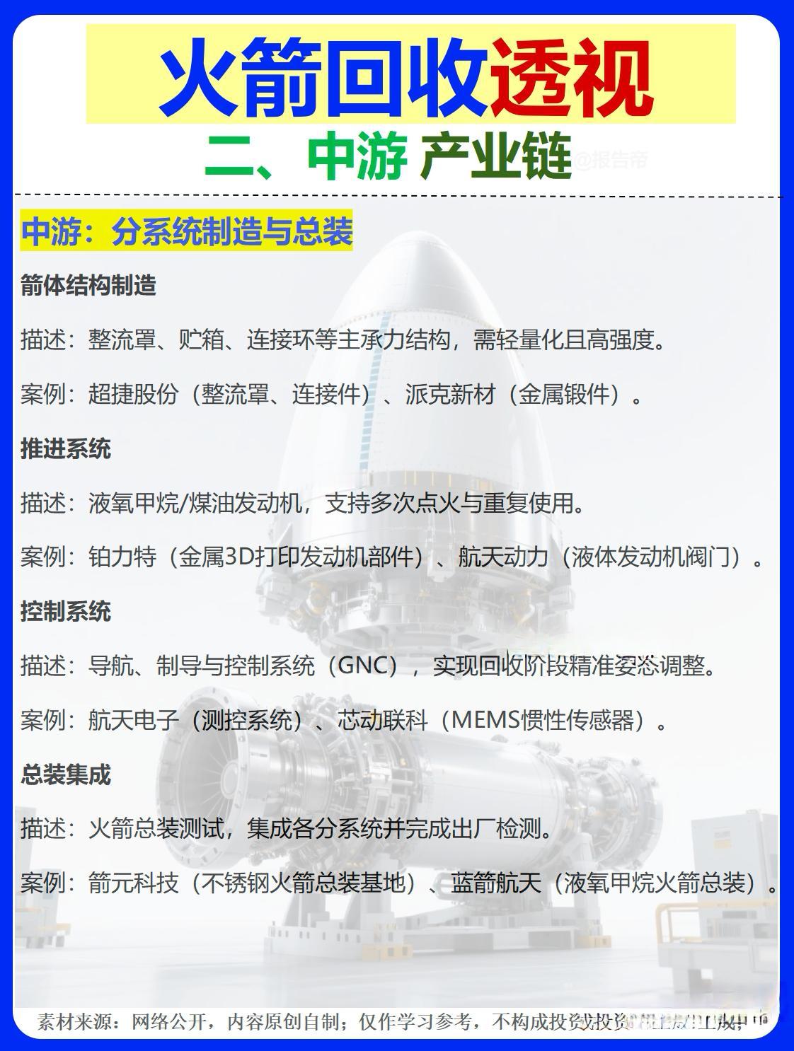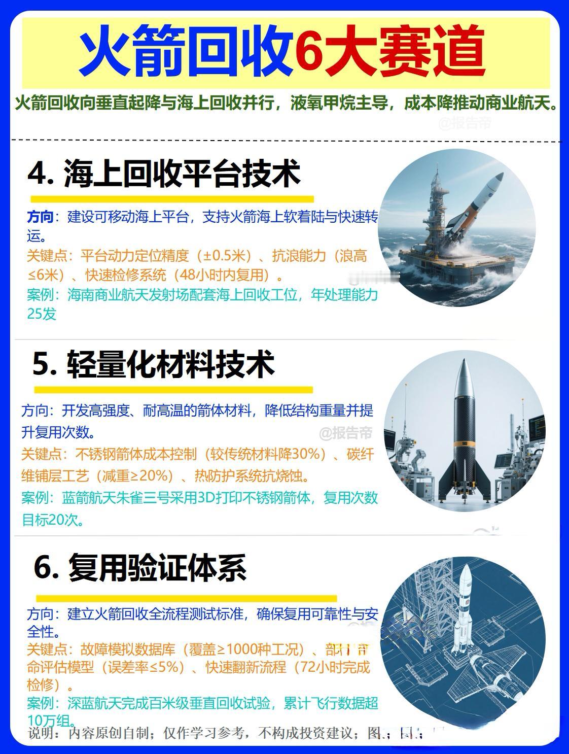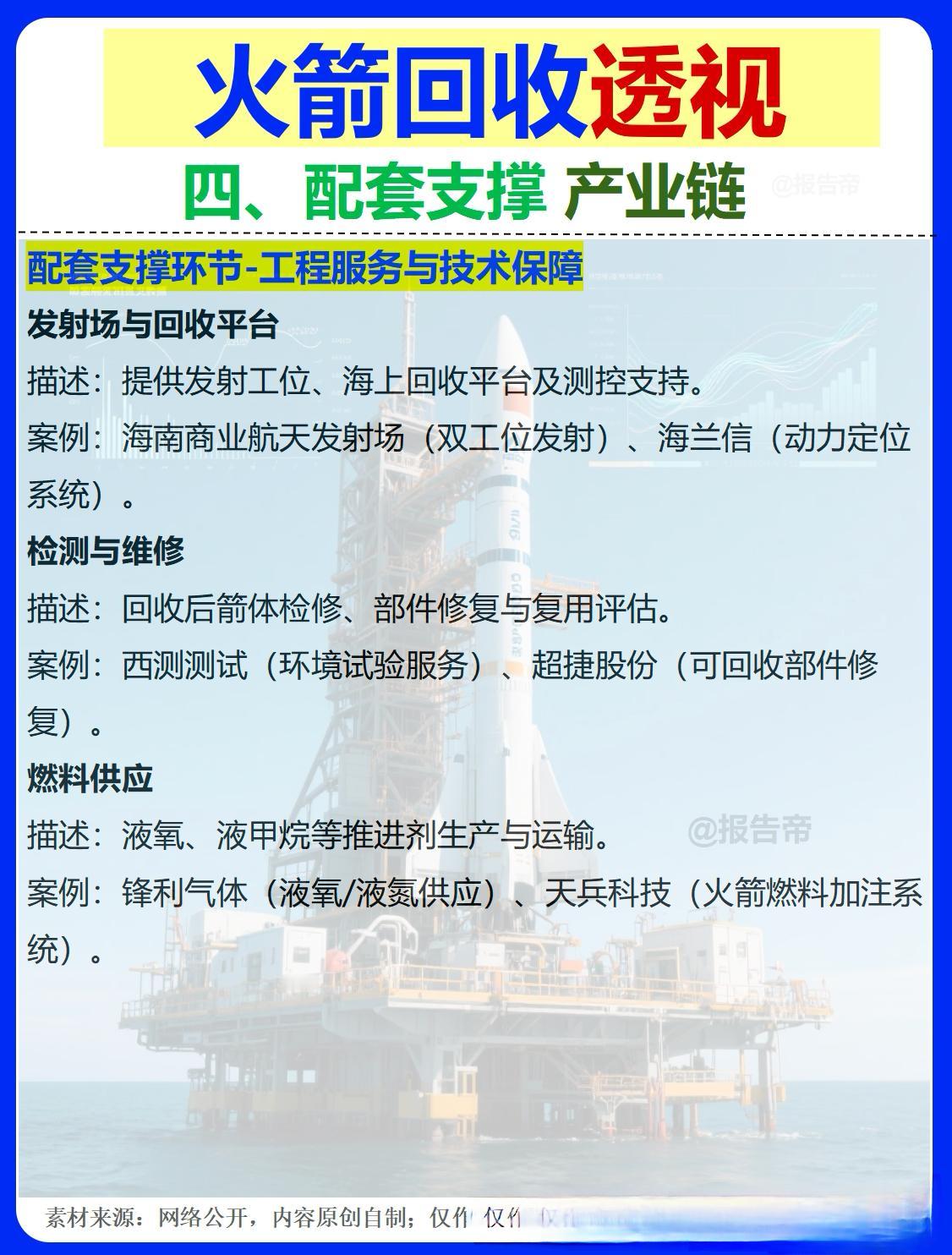 火箭重生!近日,国内首个海上回收复用火箭基地在杭州钱塘区正式开工! 火箭回收不是发射完就扔的 “一次性操作”,而是让箭体、发动机等核心部件 “落地重生”。靠可重启发动机 “刹车”、栅格舵精准导航、着陆腿平稳承接,把昂贵的航天装备变成能重复使用的 “太空工具”,核心就是大幅降低发射成本。 商业航天、卫星制造、火箭发射、航空装备与材料,相关深度内容 1、【现状】 全球赛道上,SpaceX早已靠猎鹰9号实现常态化回收,国内则是 “国家队” 与民营企业双轨发力。朱雀三号、长征十二号甲相继尝试入轨回收,虽有失利但积累了关键经验,政策、资本也持续加码,多样回收方案正在逐步落地,太空探索的 “性价比革命” 已在路上。 2、【深度】 本文的精简源于“产业链短图文”风格,但洞察的深度一如既往。