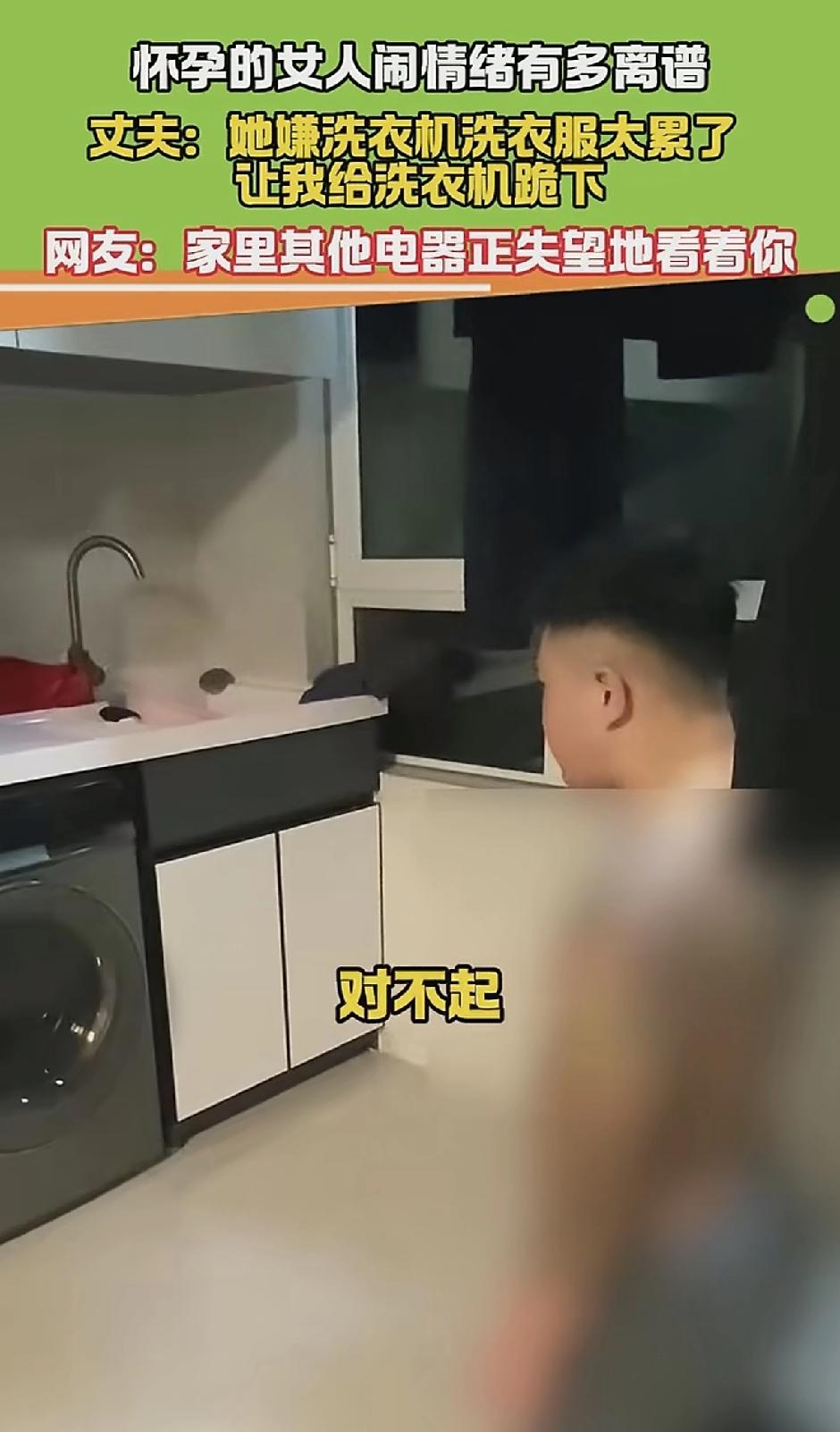 老公跪洗衣机…… 女人还是要聪明点,男人要用在正事上,在无所谓的小事上消耗感情,次数多了,到了正事男人给你撂挑子傻不傻眼,都是人,耐心都有限,爱到骨子里最后反目的还一大把。 主动的体贴和被折腾的不一样,有些行为本身就不属于正常范围,男人跪天跪地跪父母,哪有特么跪洗衣机的,去折辱一个男人,男人看在孕期忍了,说不定还能一笑而过,但这个视频既然发出来,就是铁打的证据,把一个男人当玩物,哪天男人不想陪着玩了,女人连个玩物都不是。