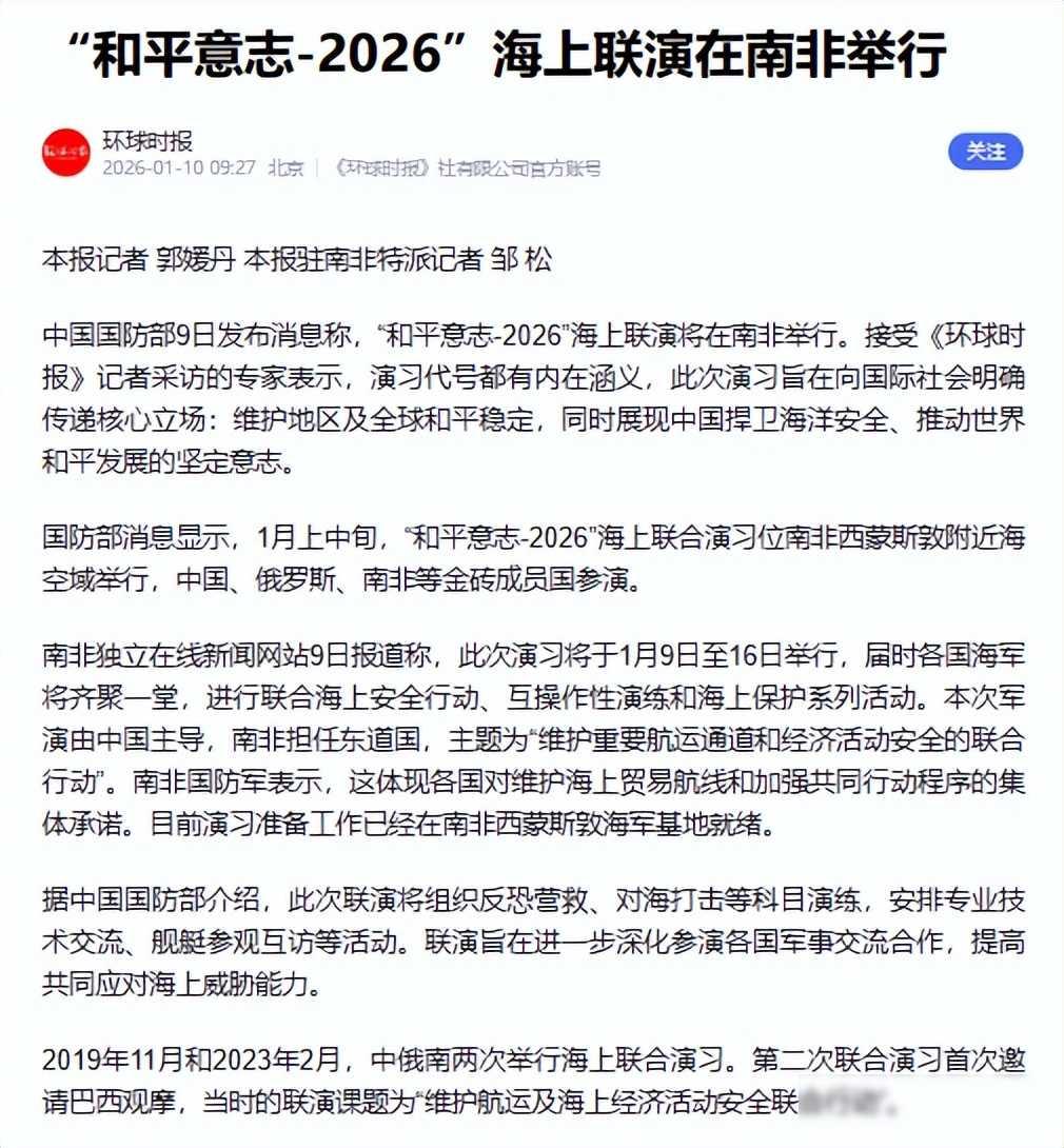 航母下水,导弹列阵,和平演习——中国军力不是突然冒头,是慢慢攒出来的 2025年6月,辽宁舰和山东舰一起开到西太平洋开展训练,这不是简单做样子,而是真正进行昼夜协同演练,表明中国航母已经能够走出近海执行远航任务,过去常有人说中国海军主要在近海活动,现在这种情况正在发生变化。 到了2025年11月,福建舰正式入列服役,这艘航母从一开始就投入实战训练,歼-35、歼-15T和空警-600等机型在首日完成弹射起飞,直接验证了作战能力,从报道中可以看出,这艘船具备实际用途,不是试验型号,它采用电磁弹射技术,表明我国的工业水平已经相当扎实。 紧接着11月14日,076型四川舰开始首航,它的排水量有四万多吨,甲板是通长的,能够搭载固定翼飞机和无人机,外媒称它为“未来两栖战力的中枢”,听起来有些唬人,其实说白了就是我们国家把登陆作战和空中支援整合在一艘船上,让效率更高了,这种设计思路跟美国那种大而全的模式不一样,更讲究实用性和灵活性。 2026年刚开始,全军就投入年度训练,陆军、海军、空军、火箭军、联勤和武警全都行动起来,节奏很快,不像过去那样只在逢年过节时展示一下实力,这更像日常操作,说明部队已经习惯于高强度训练,不是临时应付任务,这种常态化状态,才是真正体现战斗力的时候。 从1月9号到16号,中国在南非组织了一次叫做“和平意志-2026”的联合演习,整个过程没有搞对抗也没有喊口号,还对外开放让大家来看,我觉得这个做法挺聪明,不是靠吓唬别人,而是通过展示合作能力来赢得信任,金砖国家一起训练军队,比一个国家自己单干更有说服力。 技术上发生了很大变化,2025年九三阅兵中,许多无人装备一起亮相,包括潜航器、布雷艇和反无人机系统,这些无人装备并不是临时凑数,而是真正成为作战体系的核心力量,有人驾驶飞机带领无人机编队飞行的画面也公开了,这不是电影特效,而是真实的战术演练,无人机负责侦察和突破防线,有人机进行指挥调度,分工非常清楚。 高超声速武器正在加紧部署,鹰击-21、东风-17、东风-26D这些型号大家都很熟悉,它们的设计逻辑很明确,不是主动出击使用,而是在对方动手之后能立即展开反击,这种后发制人的思路和美国那种先发制人的方式完全不一样,我认为这才构成真正的威慑力量,让对手明白一旦动手也赢不了。 有人觉得中国军力增长会威胁世界稳定,但咱们国家从来没有像美国那样到处建立军事基地、搞颜色革命或者冻结别国资产,中国的三艘航母分别部署在不同海域,目的是为了守护自己的领土,而不是去抢占别人的地盘,高超音速武器主要用来实现“拒止”能力,不是为了主动攻击取胜,军事演习也强调和平目的,不追求支配地位,这种克制态度反而让人觉得更可靠。 美国一直做些不太光彩的事,1999年炸了南联盟,2026年抓了委内瑞拉政要,还监听丹麦,他们嘴上说“武力即正义”,可行动上常常越界,中国能打但不先打,显得更有分寸。 福建舰一投入使用就能打仗,这背后是因为电磁弹射、舰载机量产和预警机配套这三项工业能力一起取得了突破,不是只靠一个亮点撑场面,而是整个体系都在往前推进,无人系统能够快速装备部队,也不是因为某个研究所特别厉害,而是侦察、打击、通信和电子战这些模块都能标准化生产了,军事训练从过去一年一次变成现在天天练,这说明指挥、后勤以及跨军种的协作都已经成熟起来了。 美国以前靠着平台稀缺性吃老本,比如F-22、B-2这些高端装备别人造不出来,但现在中国把高端平台变成可以复制的模块,数量多了成本降了,技术差距自然缩小,这不是追赶是跳层,在无人机高超声速电磁战这些领域我们和美国差不多甚至局部领先,技术霸权那套逻辑在中国面前不好使。