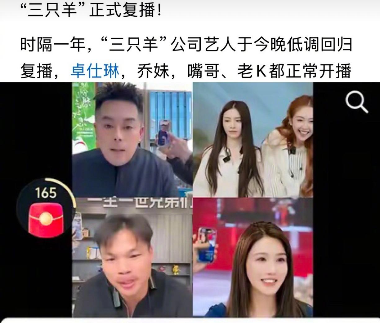 大杨哥低调露面 三只羊时隔一年正式复播 大杨哥露面烧烤店,店主晒合照,整体状态轻松。 沉寂一年的三只羊也同步正式复播,卓仕琳、乔妹、嘴哥、老K等艺人悉数开播,全程无预热,保持低调节奏。复播后的讨论重心集中在产品品质与定价上。 对直播间而言,大众的关注从来只落在产品上,品质过硬、价格实在,才是留住观众的关键! 三只羊复播 大杨哥露面 直播带货三只羊直播争议