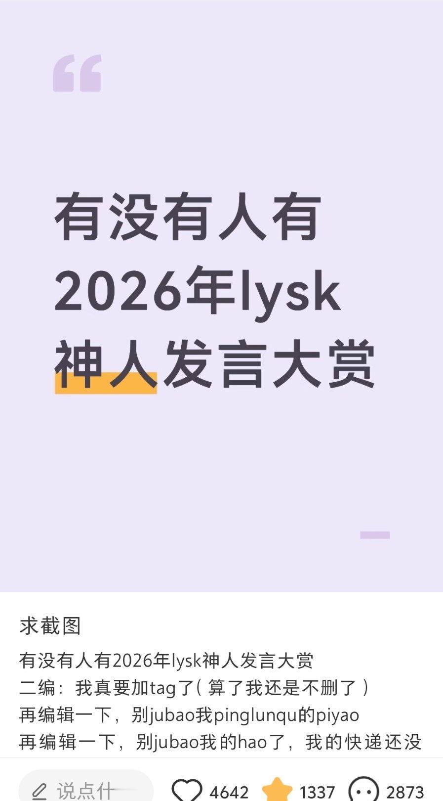 这个神人发言大赏真的八百年内没人能看懂,等我过年当春晚看,好幽默吧,,而且等放寒假了维权解的主力军回来了,到时候会有更多乐子