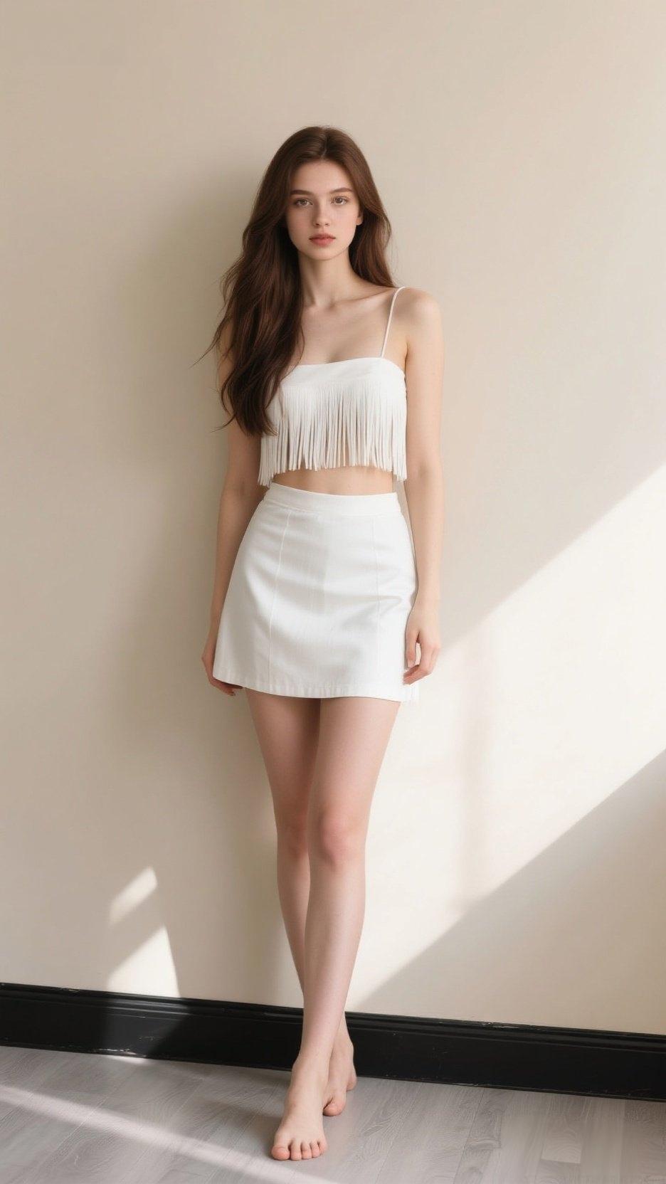 优雅白裙搭配红高跟鞋,都市时尚风范