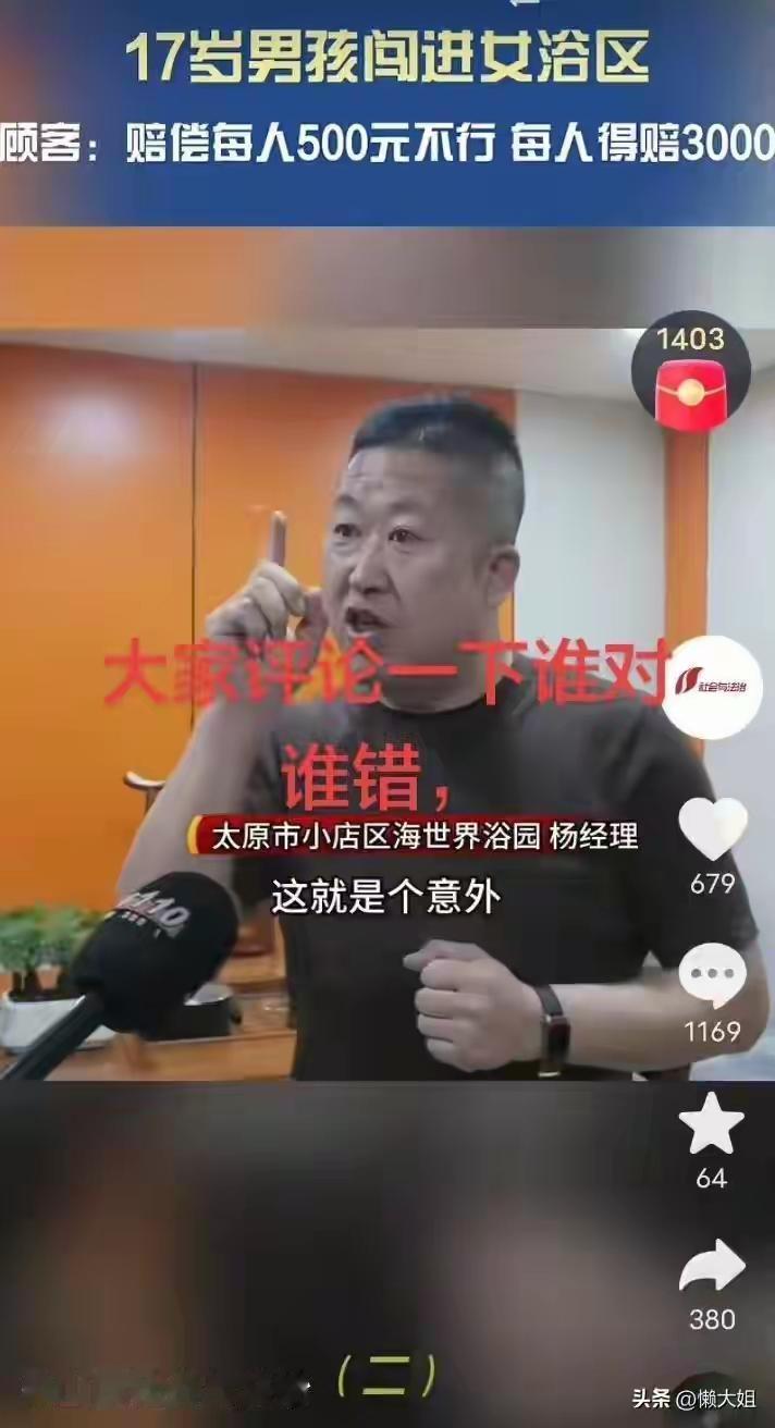 17岁男孩误闯女澡堂引轩然大波!浴场豪掷每人千元赔偿遭拒,四位大姐哭诉“终身阴影”索赔三千,网友怒斥:这是把良心按在地上摩擦? 那是一个再普通不过的周末午后,北方某浴场热气氤氲,人们正享受着忙碌生活里难得的松弛。谁也没想到,一声惊慌的呼喊会划破这份宁静——一个17岁男孩因标识不清误入女宾区通道,虽被工作人员及时拦在门外,却让四位正在更衣的女顾客瞬间炸开了锅。 浴场经理第一时间赶来道歉,态度诚恳得几乎弯腰到地。他当场拍板:四位女士当天消费全免,再送每人500元会员卡、500元现金压惊,算下来补偿足足一千元。在许多人眼里,这已是“教科书级”的危机处理,既保全了顾客面子,又显足了企业担当。 可谁曾想,四位女顾客并不买账。她们面色铁青,声音尖锐:“这是心理创伤!说不定要跟着我们一辈子,一千块就想打发?”她们咬定每人非三千不可,少一分都要讨个说法。经理苦笑摇头:“赔偿我们认,但这数额太离谱了……”场面一时僵持不下。 消息传到网上,瞬间掀起千层浪。有网友直言:“浴场做得够厚道了,孩子又不是故意的,也没造成实质伤害,见好就收不行吗?”更有人犀利点破:“这就是看准了商家怕事,想趁机捞一笔!”情绪如野火蔓延,评论区成了人性显微镜。 的确,若细细推敲,这场风波背后远不止“对错”二字。一边是受惊女性对安全感的迫切捍卫,一边是商家在人情与规则间的艰难平衡。而那个17岁男孩,或许正缩在角落瑟瑟发抖——一次无心之失,竟卷入了成人世界的博弈与算计。 更值得玩味的是,为何总有人习惯将“受害”与“价码”挂钩?心理阴影固然该被正视,但标价索赔是否早已变了味?当同理心被明码标价,当歉意被当成筹码,我们失去的恐怕比得到的更多。 回头看浴场的处理,其实藏着中国式智慧的折衷:既不愿闹大,又试图用诚意暖化坚冰。可惜,当善意被解读为软弱,妥协便成了贪婪的催化剂。这也难怪有网友愤慨:“若真走法律程序,精神损害赔偿未必能达到三千,何苦把路走绝?” 事件至今仍未落幕,但它像一面镜子,照见了社会百态。我们都在呼唤公平,却常在不自觉中双标;我们渴望被温柔以待,却未必愿将温柔给予他人。若凡事只剩算计,谁还敢主动担责?若每场意外都变成生意,善良终将沦为奢侈品。 或许,比追问“该赔多少”更重要的,是学会在纠纷中留一点余地,在愤怒中存一丝理性。世界从不完美,但我们可以选择让解决的方式多一点温度。毕竟,那些脱口而出的数字,永远量不尽人心的深浅。 (来源: 根据社交媒体热议事件及网友评论综合撰写) 社会百态 人性反思
