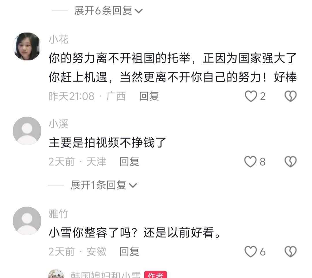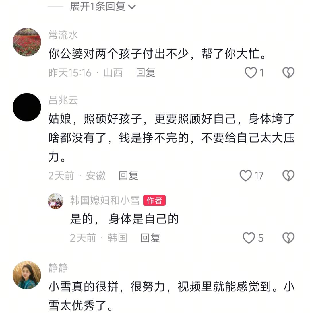 看到远嫁韩国的小雪,说如果离婚就不要婆家一分钱,我忍了 看到婆婆手握两栋房子的钱,大哥离婚的时候拿走一大半,我也忍了 可当我看到网友说为了孩子忍忍吧,我实在忍不了了 说实话,远嫁韩国的博士小雪放话离婚不要婆家一分钱,结果被全网追着劝“为了双胞胎忍忍”的时候,我真的愣了半天。一边是婆婆偏心双标、老公装聋作哑的委屈,一边是“母爱就得牺牲”的道德枷锁,换谁不得崩溃啊?这道题哪有什么标准答案? 小雪远嫁韩国多年,生了双胞胎儿子,自己卷到博士毕业,在大学当翻译,本来想好好过日子,结果和公婆住一栋楼不同楼层,矛盾没断过。老实讲,她婆婆手里攥着两栋楼呢,大嫂离婚时拿走一大笔钱,婆婆屁都没放一个,轮到小雪要回自己垫的钱,婆婆直接装失忆。本来想找婆婆坐下来好好掰扯掰扯,把自己这些年给她买补品、交水电费的账单摆出来,但后来发现纯属白费力气,她老公更是缩在房间里不吭声,连句公道话都不敢说。 郁闷!真的太郁闷了!她直播说要离婚,娘家妈直接打电话:“闺女回来,妈养你!”不要婆家一分钱的底气,这不就来了?评论区炸锅了,一堆人喊“为了孩子忍忍吧”,我晕,难道孩子在冷冰冰的家里长大,会比跟着开心的妈妈更好?我闺蜜还跟我说,人这一辈子执念别太深,放过别人也是放过自己,你说这是不是有点那味儿了? 直播之后小雪就停更了,偶尔发点双胞胎的日常,连脸都不露,网友猜疯了,说她是不是离婚了,是不是被婆家刁难了。结果过了一阵子,她突然发视频,自己一个人回山东老家了,还给爸妈带了大包小包的礼物,画面里笑得眼睛都弯了。复更的时候她才说,停更是因为身体垮了,熬夜备课加心里堵得慌,实在扛不住了。本来想硬撑着更新,后来发现身体才是本钱,先歇着才是正经事。说真的,看到她状态变好,我心里直呼太棒了!她现在更新的都是上课日常、带娃逛公园的片段,再也不提离婚那档子事了,日子过得巴适得很。 总之啊,小雪这事真的戳中了太多人。我想说的是,别被“完整家庭”的执念绑死了,孩子要的是快乐的妈妈,不是硬撑的屋檐。你自己都憋屈得不行,怎么给孩子正能量呢?至于那些劝你忍的人,他们又不会替你过日子,对吧?远嫁韩国 网红小雪夫妇