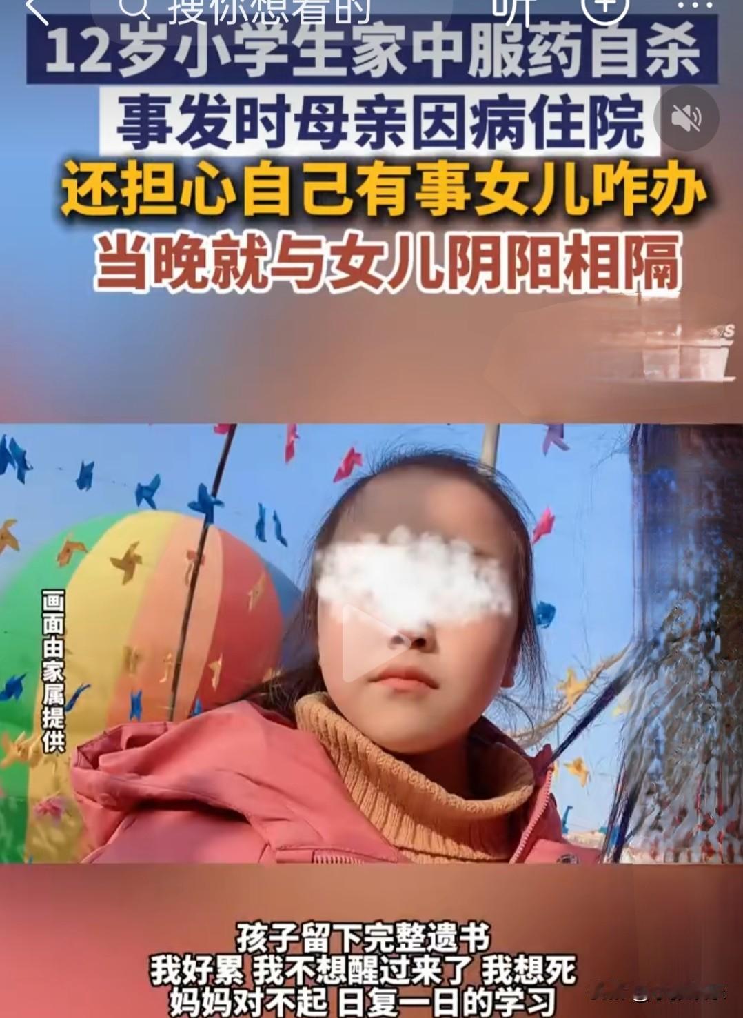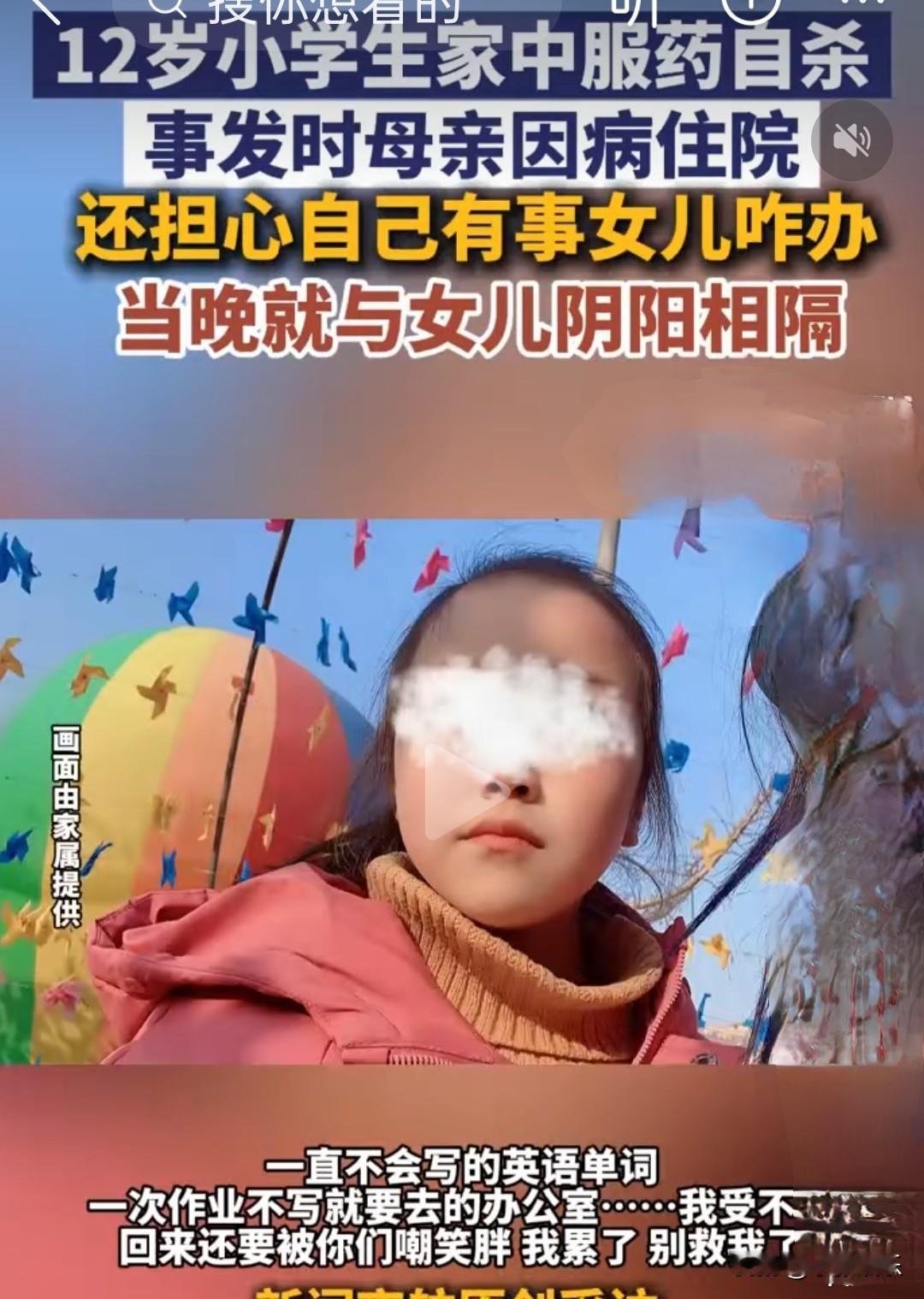 ”妈妈,我好累,我不想醒过来了,对不起!“这是来自一个12岁女孩小许的绝笔。 2024年9月23日,小许母亲马永虹因身体疾病住院治疗,因担心自身病情影响女儿,住院期间始终牵挂小许。 当天晚上,独自在家的小许吞下外婆治疗心脏病的100粒药物,最终不幸离世,母女二人就此阴阳相隔。 那么小许为什么会做出如此极端的行为呢?我们从她的遗书中可以找到一些佐证, 一是学业压力带来的心理负担,“一直不会写的英语单词,一次作业不写就要去的办公室”,使其长期处于焦虑状态; 二是遭受言语伤害后的负面情绪,“回来还要被你们嘲笑胖”进一步加剧了心理痛苦。她在遗书中写道“我好累,我不想醒过来了,我想死,妈妈对不起,日复一日的学习”,最终留下“我累了,别救我了”的话语。 小许离世后,妈妈马永虹以手掩面、哽咽回忆,小许平日颇为贴心,每当自己难过落泪时,女儿总会主动为其擦拭眼泪; 如今这份日常的温暖已无法重现,“小许只能在梦里”成为其心中难以释怀的遗憾。
