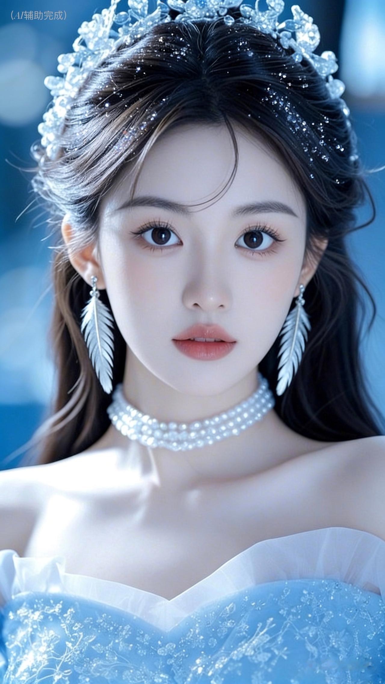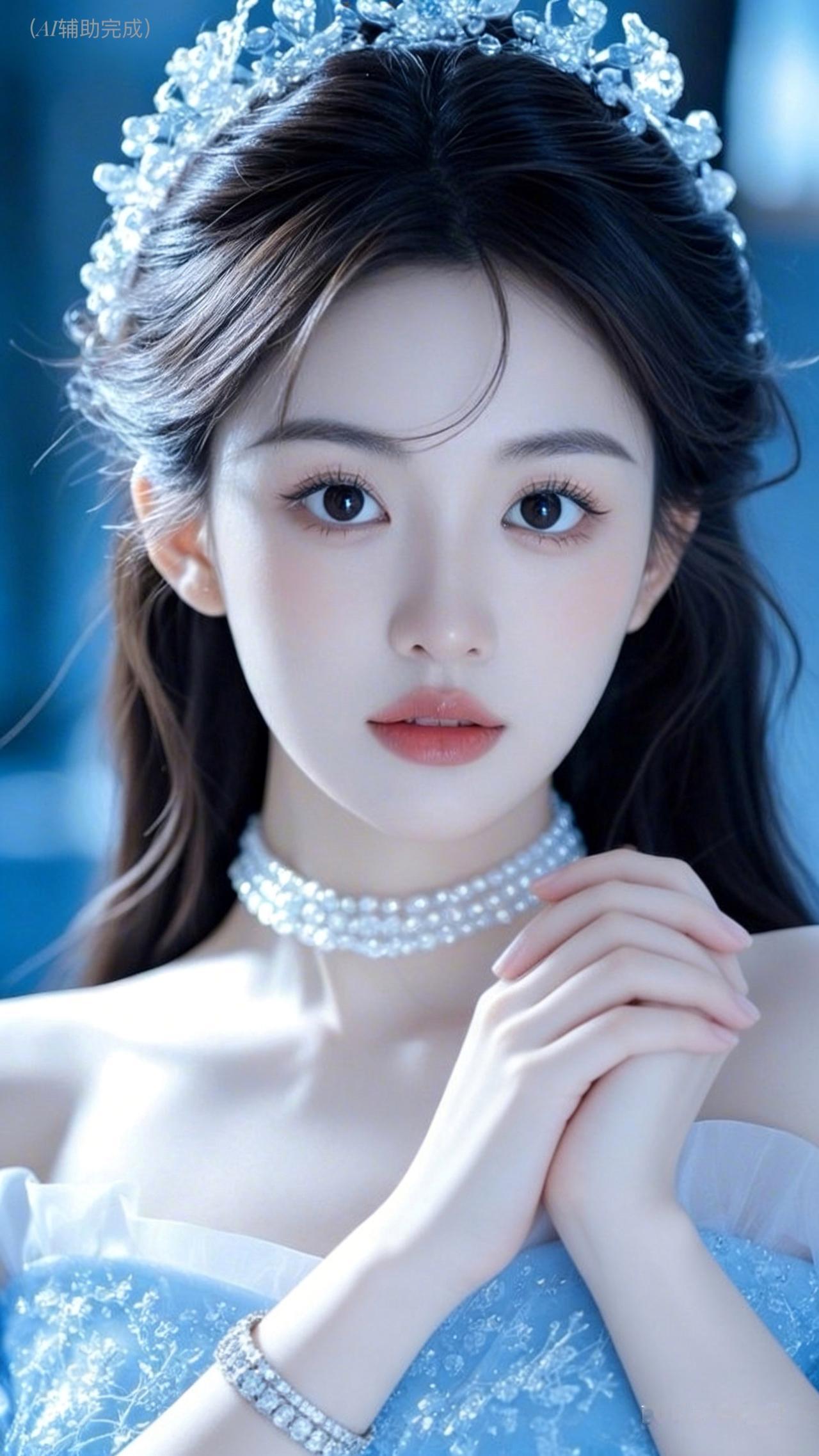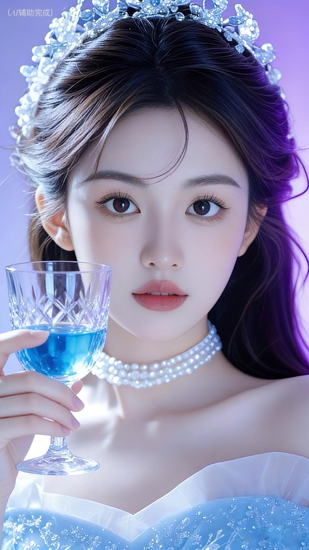九帧皆藏童话公主韵。浅蓝霓裳缀亮片,水晶皇冠耀,珍珠项链叠三层。蓝紫幻境托仙姿,眸藏星,仪态万方轻执杯。东方雅韵漫开梦幻,这绝美国风,一眼沦陷!