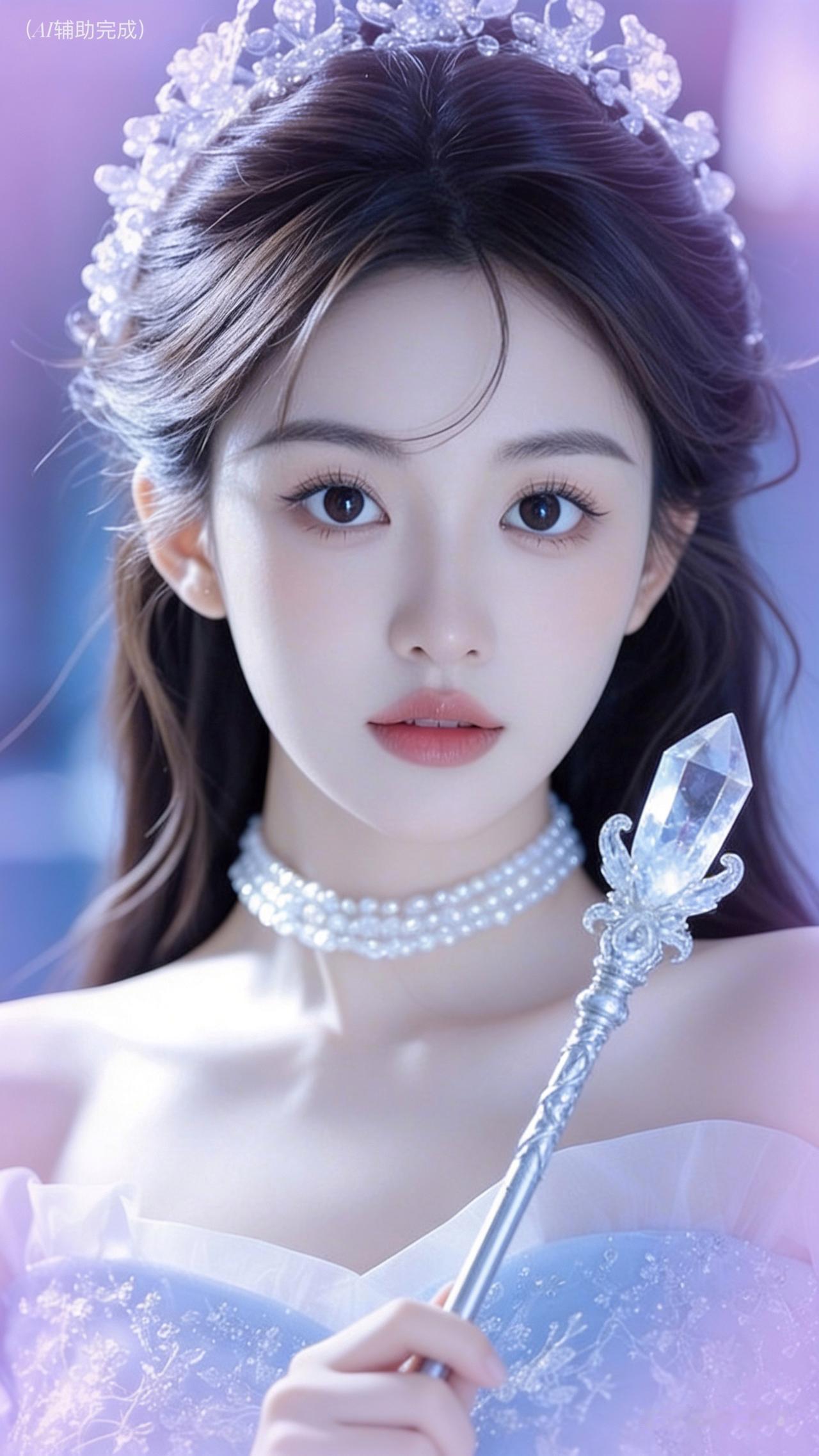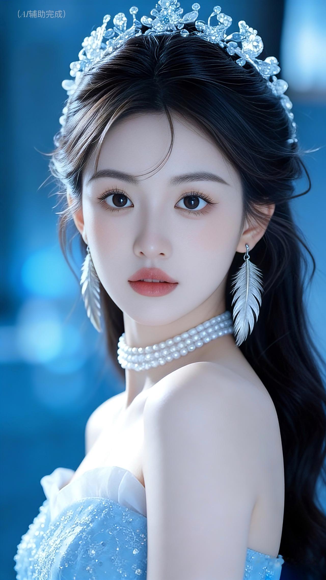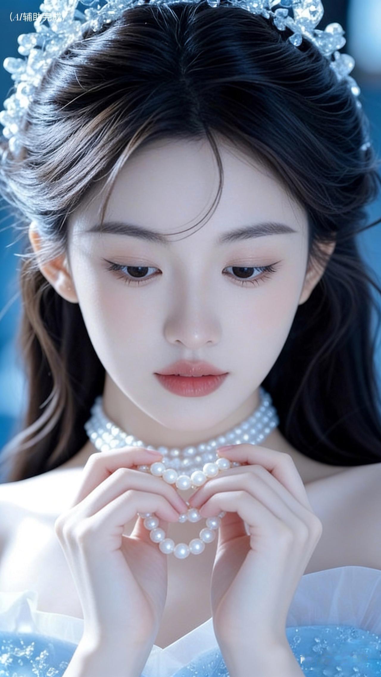 九帧皆藏童话公主韵。浅蓝霓裳缀亮片,水晶皇冠耀,珍珠项链叠三层。蓝紫幻境托仙姿,眸藏星,仪态万方轻执杯。东方雅韵漫开梦幻,这绝美国风,一眼沦陷!