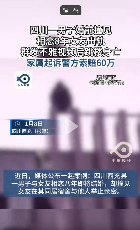 四川,一男子和女友热恋八年,为了给女友一个惊喜,男子没有告诉女友就提前返回住处,结果却看到女友和一男子躺在床上,男子气愤之余直接拿走了电脑,当晚男子又威胁要公开不雅视频,女友报警后男子却坠楼身亡,事发后,男子家属将警方告上了法院索赔60万   文某没想到,他这次悄悄提前回来,迎接他的不是惊喜,而是彻底的崩溃。   两人谈了八年,感情走到谈婚论嫁,本来计划好年底结婚,他提前回来,就是想给女友一个意外的惊喜,结果进门一看,女友和别的男人在床上,气氛暧昧得不容多想。   他当时没闹腾,也没摔东西,就是走上前去把自己送的电脑和几件贵重物品拿走,然后转身离开,谁都看得出来,他脸色不对,心里肯定不是滋味。   但事还没完,人走了,情绪没过去,他开始给女友打电话,情绪激动,说话也带上了威胁的意思,他提到手上有一些不太体面的东西,要是传出去,对方脸上可挂不住。   女友一听不对劲,立马报警,她怕的不是他骂她,是他真把那些视频发出去。   没过多久,那些私密内容就真的出现在了她的工作群和一些网上平台,虽然发出来的时间不长,但也已经造成了影响,她赶紧第二次报警,警方介入调查。   与此同时,文某的弟弟也报警了,他说哥哥心态已经崩了,有自杀的倾向,还大概知道他在哪儿,警方接到信息后马上展开搜寻,调监控、安排人手,流程走得不慢。   可惜还是没来得及,当天晚上,文某从一处高楼坠下,抢救无效身亡。   人走了,事也闹大了,文某的父母觉得儿子的死和警方办事不力有关,认为救援不及时,处理不到位,才导致悲剧发生,于是把公安机关告上了法庭,要求赔偿六十万。   法院受理了案子,最后的结论是:驳回全部诉求,原因很简单,警方在接警后已经按照流程迅速行动,没有耽误时间,也没有懈怠,至于结果,遗憾归遗憾,但不能证明警方有责任。   有些人可能会问,既然知道人要轻生,为什么没能早点找到?可问题是,警方不是神,不能预知一个人具体在哪儿,也不能穿墙透视。   更何况文某本身就没留什么线索,他是有明确轻生念头的,甚至提前交代了后事,在这种情况下,任何外力想拦都难。   法院在判决中也强调,警方负有出警和救助的义务,但这并不代表他们能对每一个结果负责,能及时出警、采取措施,就已经履行了职责,至于最后能不能成功阻止,不是他们一个部门说了算。   文某的死,当然令人惋惜,他不是坏人,只是走到了情绪的边缘,一步踏空,回不来了。   但这事归根结底,还是感情破裂引发的连锁反应,他对女友的信任突然崩塌,又无法接受现实,情绪上头,一步步走到了最极端的地步。   他拿走电脑,威胁曝光,甚至真的把视频发出去,这一连串行为已经越了线,这不是简单的情绪发泄,而是对他人隐私权的严重侵犯。   而且他不是没机会回头,他可以报警,可以找朋友倾诉,可以冷静处理,但他把所有出口都堵死了,只留下最狠的一条路。   他父母的心情可以理解,失独之痛谁也扛不住,但把责任推给警方,只能说是情绪上的宣泄,法律讲的是证据和流程,不是感情用事,法院不赔,不代表没人惋惜,而是要分清楚,谁该负责,谁不该背锅。   整个事件里,最可惜的是,原本可以通过沟通解决的问题,最后演变成一场人命官司,视频发出去,不仅伤害了对方,也让自己彻底没了退路。   情绪这东西,一旦上头,就很容易失控,但无论多么难过,也不能拿别人的隐私当筹码,更不能拿自己的命当赌注。   再退一步说,就算真的是受了情伤,也不该让别人来承担你所有的后果,一个成年人,面对感情的崩塌,最起码得有点自控力,你可以难过,可以愤怒,但不能做出违法的事,更不能轻易放弃生命。   法院的判决,其实也是在给社会一个信号:情感纠纷再复杂,责任也应该分清楚;警方再尽力,也不能对所有悲剧兜底。   说到底,法律不是安慰剂,而是底线。感情出事了,可以哭,可以闹,但不能乱了分寸,更不能动不动就拉别人下水。   这事过去了,但留给我们的反思还在,感情不是万能的,也不是不能崩的,但人得学会在崩的时候,稳住自己,别让一时冲动,变成一辈子的遗憾。   文某的故事,听着让人唏嘘,但它也不是孤例,感情走到尽头,伤心是难免的,可伤得再深,也不能让理智断线,毁掉别人,毁了自己,最后什么都没剩。   人生的路总要自己走,警察不是万能的保护伞,法律也不是情绪的出口,愿以后再遇到类似的事,能多一份冷静,少一条不该失去的命。