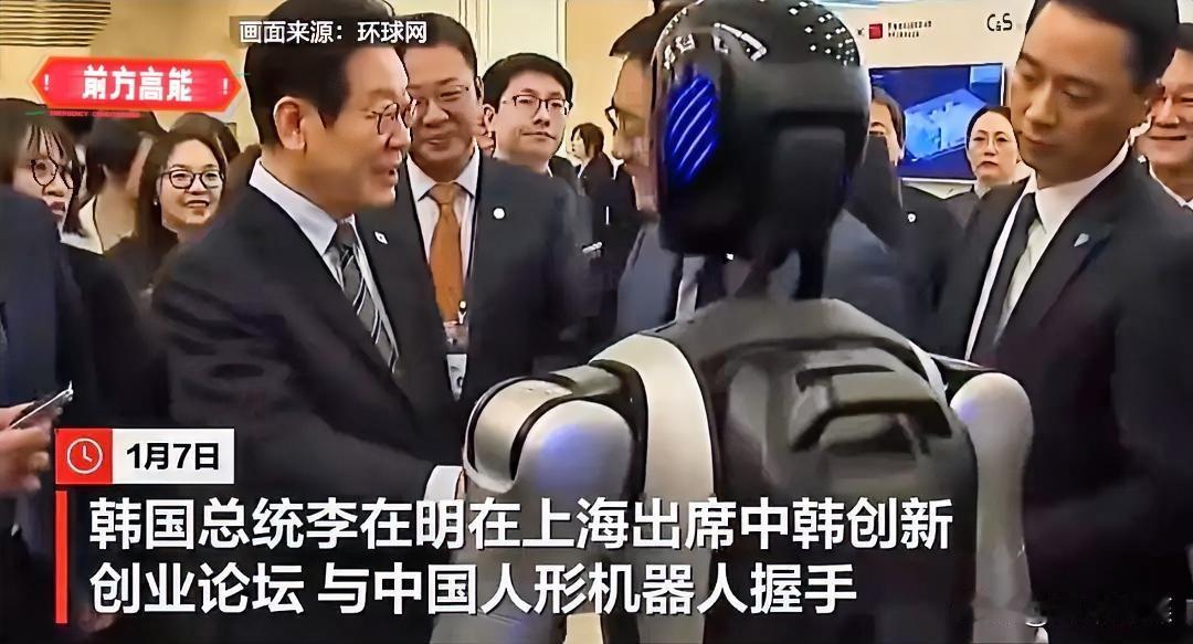 刷屏了! 李在明上海遇“对手”, 国产机器人这波操作太秀了 李在明现身上海中韩创新创业论坛,带领200多名韩国企业家参会对接项目,因与智元远征A2机器人握手的画面刷屏。 这款机器人2025年斩获吉尼斯世界纪录,拥有超高语音识别率与丰富功能应用,是东方大国AI领域技术实力的缩影。 这款机器人的亮眼表现,正是中国AI技术从实验室走向现实的生动写照。 如今国产机器人已在工业生产、养老陪护、应急救援等多个场景落地,既能替代人工完成高危作业,也能为日常生活添便利。 而中韩此次科创对接,恰好契合两国产业互补优势——中国有广阔应用场景和工程化能力,韩国有先进制造技术,双方合作不仅能让技术更好服务民生,更能共同做大科创“蛋糕”,让科技红利惠及更多人。 与机器人的互动让在场者印象深刻,此行推动了中韩企业的交流合作,也体现出东方大国在相关领域的技术分量。 网友说:“咱就说这机器人握手的事儿,看着新鲜,实则是咱国产技术的硬实力!中韩企业家搭伙搞科创,互利共赢,以后这样的好合作肯定越来越多!” 大家对此怎么看?评论区一起聊聊上海智元机器人 上海半导体产业链的优势在哪里