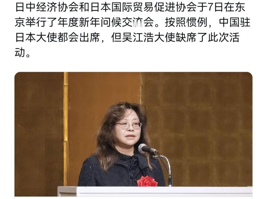 极不寻常,中方降格出席!中国驻日大使罕见缺席日方新年问候交流会!   今年日本商界一年一度的新年会,气氛明显不对劲,表面上还是西装革履、灯光明亮,可真正让人心里发凉的,不是东京的寒风,而是会场里那种说不出口的尴尬。   最扎眼的,是主宾席上少了一个人,往年这个位置,必定坐着中国驻日大使,媒体追着拍、商界抢着聊,象征着合作、生意和“还有得谈”,可今年,这把椅子空着,没人坐,也没人敢提。   这不是走不开,更不是疏忽,而是一个非常明确的信号,关系,被降级了,中国驻日大使吴江浩没有出席,站出来发言的,是级别明显更低的驻日公使罗晓梅。   而且,她也没打算给谁留面子,一上来就把话说透了,中日关系,正处在邦交正常化以来最复杂、最严峻的阶段。   这句话一出口,现场气氛直接降温,因为日本商界这些年一直抱着一个老想法,政治是政治,生意是生意,不少日本企业原本还在盘算,凑个两百人的访华团,见见老朋友、谈谈项目,想着“笑脸一摆,订单就回来”。   可那把空椅子已经把话说得很清楚,一边在政治和安全问题上踩红线,一边还想在中国市场吃饭,这种好事,没了。     最近一段时间,日本政坛在危险边缘反复试探,从高市早苗这种重量级政客公开喊出“台湾有事就是日本有事”,甚至暗示军事介入开始,这就已经不是口误,而是直接挑战中日关系的政治底线。   紧接着,日本防卫省又配合演戏,自家舰机跑去贴着中国航母编队近距离跟踪,回头却反咬一口,说遭到“雷达照射”,这套“贼喊捉贼”的说法,说白了,就是为国内突破和平宪法、扩军备武找理由。   更严重的是,日本开始在历史问题上动歪脑筋,翻出中国从未承认的《旧金山和约》,想借此否定《开罗宣言》和《波茨坦公告》的战后安排,这已经不是利益摩擦,而是在动二战后的国际秩序,是在给军国主义翻案。     所以,中方的回应也不只是嘴上说说,外交层面直接亮明态度,文旅、教育部门随后跟进预警,结果很现实,日本最骄傲的旅游、零售、高校留学生,全都开始感受到冷风,游客少了,商场冷了,学校也开始发愁。   这场新年会,说白了,就是给日本商界的一记清醒针,过去那种“政治归政治,赚钱归赚钱”的幻想,已经不适合现在的世界,在安全和核心利益问题上踩线,就不可能指望经济合作独善其身。   那把空椅子传递的信息很简单,政治互信没了,生意就谈不下去,现在真正该着急的,不是中方,而是那些还想继续深耕中国市场的日本企业,门还没彻底关,但钥匙在谁手里,很清楚。   如果日本继续在历史和安全问题上来回横跳,那下次面对的,恐怕就不只是“缺席”和“降格”,而是一扇真正关上的大门。