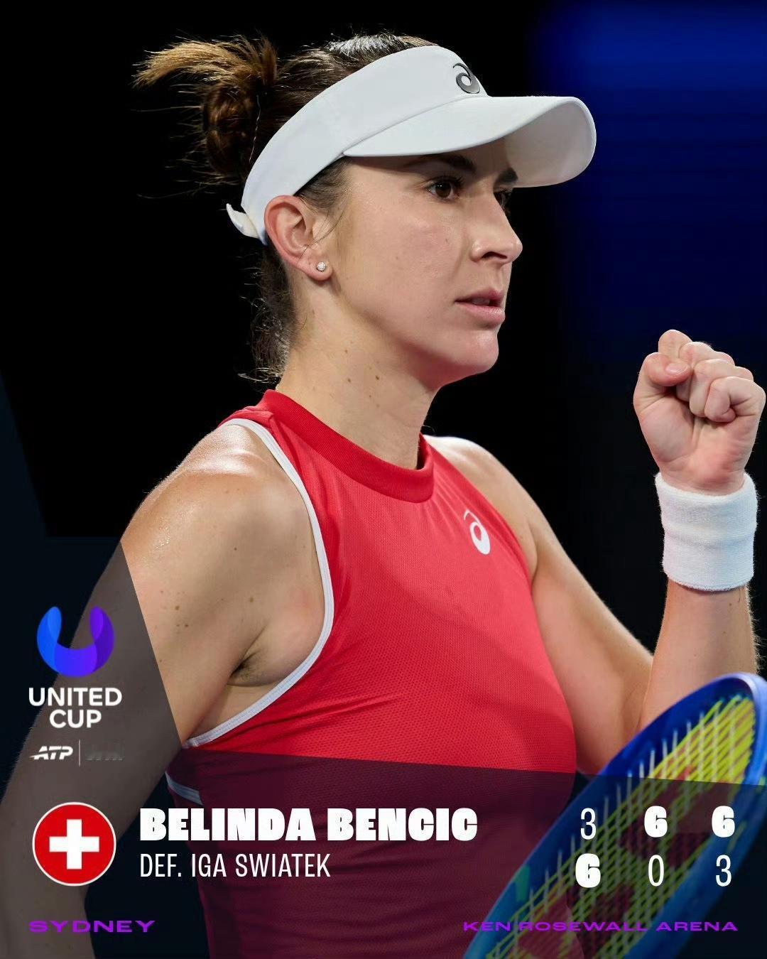 为母则刚,带女参赛的本西奇送蛋逆转世界第二! 2024年4月生育后,她以世界排名第421位重返赛场,2025年2月复出首站即夺得WTA500阿布扎比冠军,2025年温网首进四强。 2026联合杯决赛,本西奇3-6/6-0/6-3逆转斯瓦泰克。本届联合杯本西奇保持单打、双打不败战绩(9-0)。如果瑞士队夺冠本西奇将破百万美元收入,如果瑞士队亚军,本西奇收获96.24万美元。