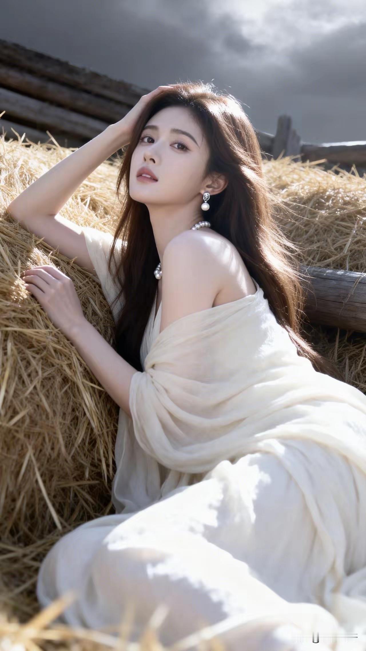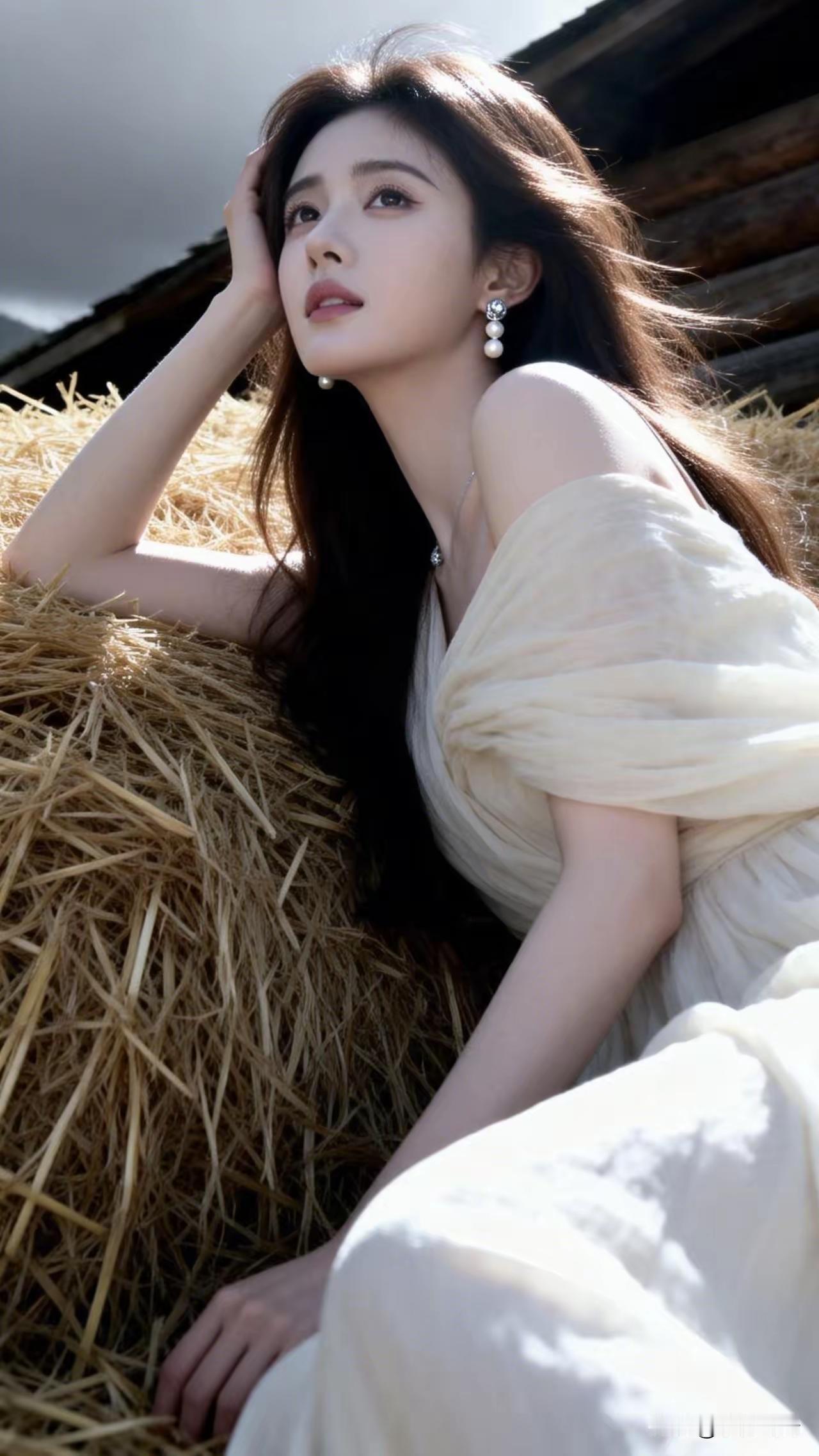 田园少女,置身于干草堆中,散发着自然纯真的气息。随手拍一张晚霞照 女人老了,还需
