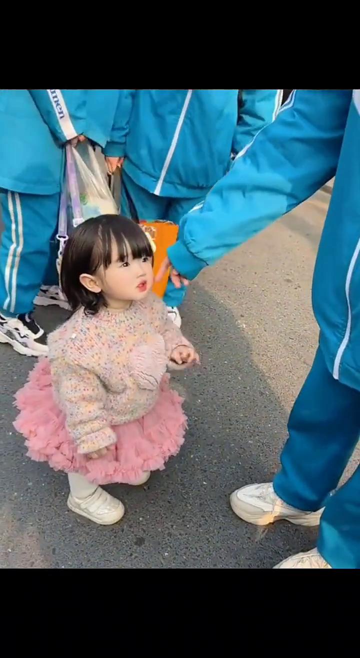 今天又来接姐姐放学了,到处搜寻姐姐,被一群姐姐围观了,一个一个的确认是不是姐姐,有人夸她就跟人打招呼,终于找到了姐姐。