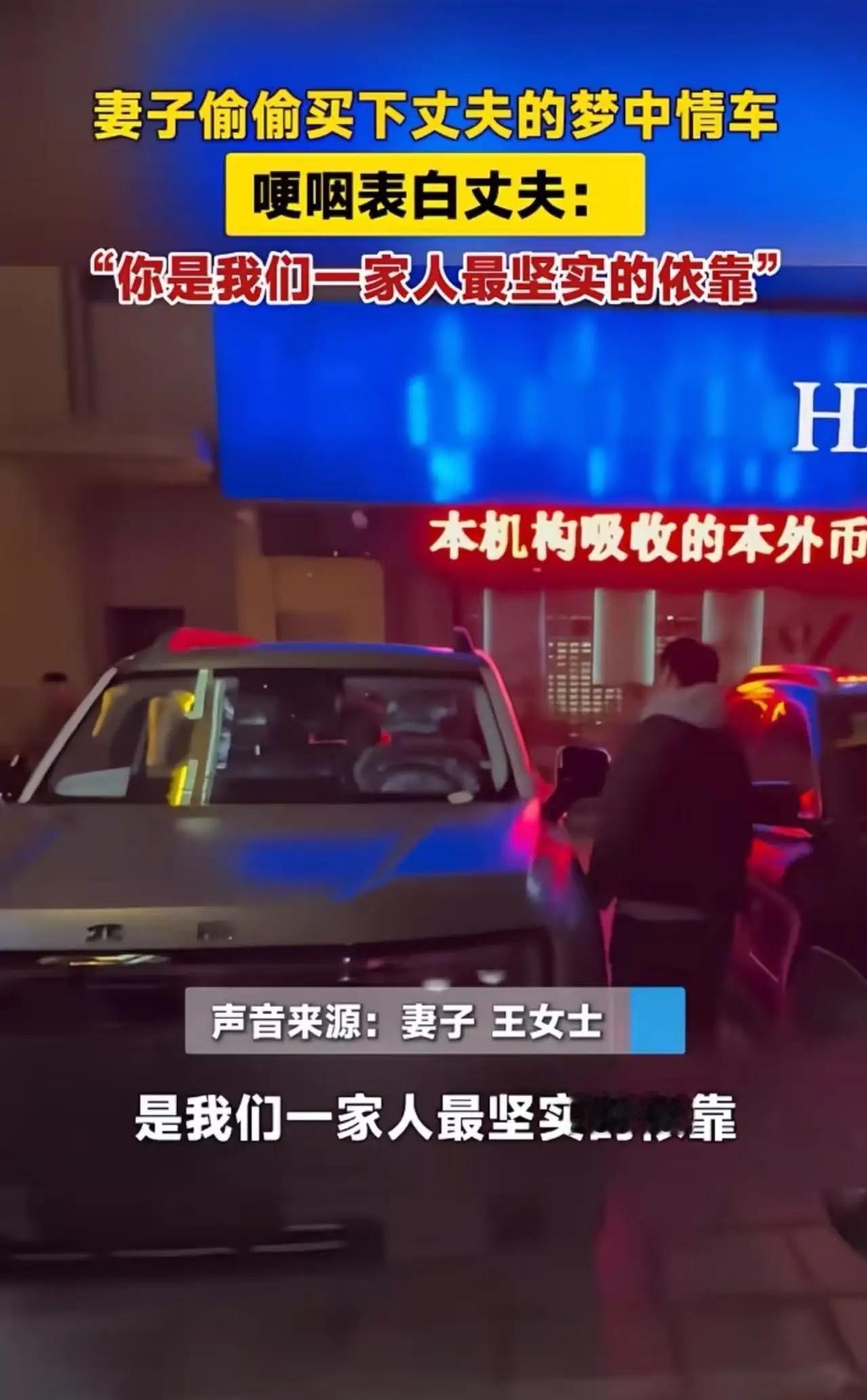 看哭了!山东德州,妻子看丈夫每天睡觉拿着手机看车,于是偷偷买下丈夫的“梦中情车”,给丈夫一个惊喜!丈夫受宠若惊,让妻子退掉,妻子一番话让人泪目!网友:比那个买洗碗机的媳妇强太多了! 40岁的老李开着一辆2014年的旧车,风里来雨里去跑了整整十二年,里程表早就突破了十五万公里。 这辆车陪着他从单身到成家,从职场新人到家里的顶梁柱,如今早已满身“沧桑”——夏天空调时好时坏,三伏天里开车像蒸桑拿,开半小时就汗透衣衫。 冬天暖风又要等好久才发热,玻璃上的雾气半天散不去。 一到下雨天,老化的雨刮器就疯狂“跳舞”,刮得玻璃模糊不清,每次出门都让妻子王女士提心吊胆。 王女士不止一次劝他换辆车,可老李总笑着摆手拒绝。 他说车子能开就行,没必要花冤枉钱,家里的钱要留着给孩子交学费、给老人养老,还得攒着应对不时之需。 王女士知道丈夫的心思,他对家人向来大方,给自己买件几十块的T恤都犹豫半天,却从来没亏待过她和孩子。 让她心疼的是,丈夫每天晚上躺在床上,都要拿着手机刷好久汽车视频,翻来覆去看那款他念叨了好几年的硬派越野车。 眼神里满是向往,刷累了才抱着手机沉沉睡去,手机屏幕还停留在汽车详情页上。 看着丈夫藏在节俭背后的梦想,王女士悄悄下定了决心。 她开始默默留意丈夫的浏览记录,记下他喜欢的车型、配置和颜色,又趁着周末借口逛街,偷偷跑到4S店实地咨询。 为了凑够购车款,她把自己攒了好几年的私房钱都拿了出来,还悄悄提前支取了部分年终奖。 前后忙活了一个多月,终于在新年到来前,把那辆丈夫心心念念的“梦中情车”提回了家。 提车那天,王女士特意选了个老李休息的日子,把新车洗得锃亮,停在自家小区楼下,还在车窗上贴了张纸条:“送给家里最辛苦的顶梁柱”。 傍晚老李下班回家,远远就看到了这辆熟悉又陌生的车,走近一看才发现是自己朝思暮想的款式,再看到车窗上的纸条,整个人都愣住了。 王女士笑着从背后走出来,告诉他这是给他的惊喜,老李当场红了眼眶,受宠若惊地围着车转了两圈,手都不敢轻易触碰。 嘴里一个劲地说:“这太贵重了,快退了去,咱们用不着这么好的车!” 他拉着王女士的手,絮絮叨叨地算着账,说这车的钱能给孩子报好几个兴趣班,能给老人做两次全面体检,实在没必要花在自己身上。 王女士看着丈夫焦急又感动的样子,轻轻拍了拍他的手背,一番话让在场的邻居都红了眼。 她告诉老李,这些年他为了这个家起早贪黑,从来没为自己活过,那辆旧车不仅开着不舒服,电子系统时不时出问题,底盘悬挂也有些松动,继续开下去有安全隐患。 “你总说对我们好就行,可我也想让你开心啊,这不是一辆车,是你的梦想,也是我对你的心意。” 这番朴实的话没有华丽的辞藻,却字字戳中人心。老李再也忍不住,紧紧抱住妻子,泪水打湿了她的肩膀。 王女士把这段温馨的瞬间拍下来发到网上,很快就引发了全网热议,短短一天就收获了几十万点赞。 网友们纷纷留言,有人说这才是双向奔赴的爱情,有人羡慕老李娶到了懂他的人,还有人调侃“比那个买洗碗机的媳妇强太多了”。 大家之所以会有这样的对比,是因为两种礼物背后的心意截然不同。 买洗碗机更多是出于家庭功能需求,而王女士的礼物,核心是看见丈夫的付出、珍视他的梦想,这份“你辛苦了,我想让你快乐”的心意,比任何昂贵的物品都更打动人。 就像很多网友分享的,夫妻之间最珍贵的,从来不是轰轰烈烈的浪漫,而是这种把对方的愿望放在心上,悄悄为他实现的细腻体贴。 老李的旧车还停在楼下,见证着这个家庭的点点滴滴,而新车则载着夫妻俩的幸福,继续奔赴未来的日子。 这个发生在山东德州的暖心故事,让我们看到,婚姻最好的模样,不过是你懂我的不易,我疼你的辛苦,在柴米油盐的琐碎里,藏着彼此最真挚的牵挂。