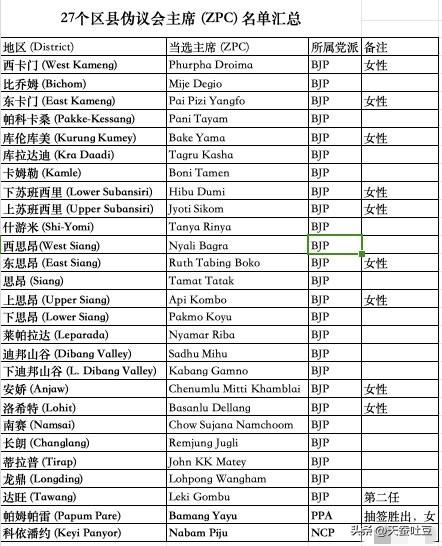 【藏南政情】藏南现状 印度媒体报道, 1月10日,“藏南各级伪行政机构”进行了“选举”,根据媒体公布的选举结果,呈现出印度人民党(BJP)压倒性“胜利”的局面。 在“藏南”地区27个县伪议会“主席”(Zilla Parishad Chairpersons, ZPC)选举中,印人党 (BJP)赢得 25个 席位,伪阿鲁纳恰尔人民党 (PPA)赢得 1个 席位(帕姆帕雷区),民族主义国大党 (NCP)赢得 1个 席位(科依潘约区)。此次,在27个伪主席职位中,有 11位女性 当选,显示了女性在藏南基层政治中领导力的提升。 由于印人党在25个地区中都占据多数席位,所以选举结果并没有激烈的变化。只在帕姆帕雷地区 (Papum Pare) 选举结果最具戏剧性,由于当地的当地伪议员(ZPM)席位分别为 BJP 8席、PPA 6席、国大党 2席。由于国大党决定支持 PPA,导致双方以 8:8 战平。最终该地区伪议员决定通过抽签(Draw of Lots)决定胜负,PPA 的 Bamang Yayu 幸运击败 BJP 候选人当选。 而在上思昂地区 (Upper Siang),原本 BJP 与 PPA 各持 5 席战平,但由于 PPA 候选人在1月9日撤回提名,BJP 的 Api Kombo 最终不战而胜。她是该区历史上第五任伪主席,也是第二位女性伪主席。