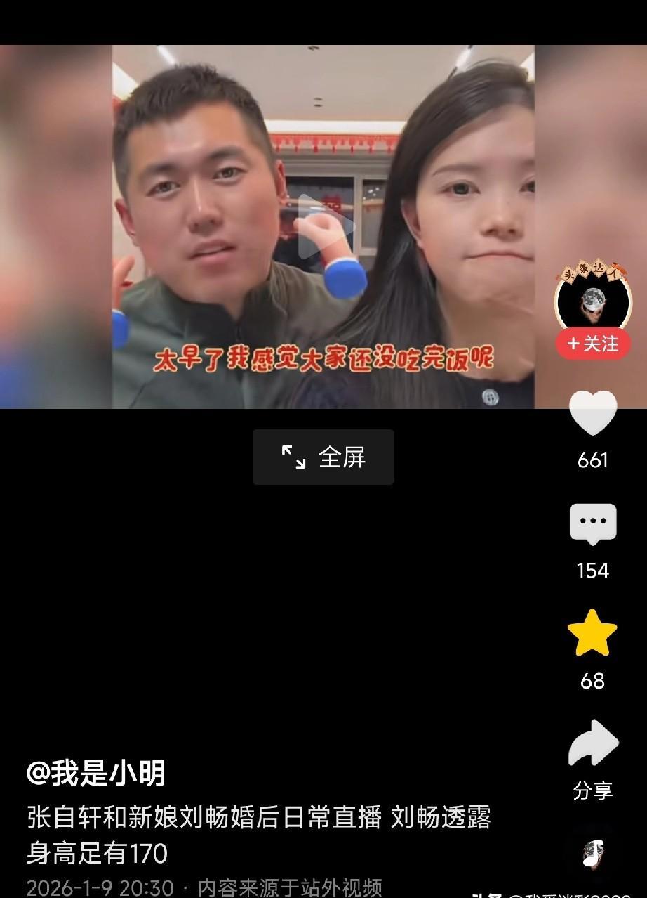 10万+人涌入张自轩的直播间,不是为了看他,而是为了审视他的新娘。 镜头前,刘畅没有开美颜。 皮肤的绒毛、紧张时微抿的嘴角,都清晰可见。 她下意识地往丈夫身后躲了半步。 直到张自轩轻轻捏了捏她的手,她才对着镜头笑了笑。 身高成了网友最执着的追问。 刘畅报出1米70时,弹幕瞬间安静了。 这个数字,恰好填补了某种世俗眼光里的“般配”。 更深层的好奇心在评论区蔓延。 接亲那天的排场,暗示了刘畅家境的优渥。 一个能歌善舞的妹妹,更是为这个家庭增添了神秘色彩。 当10万人同时围观一个女孩的颜值、家境和身高,他们到底在寻找什么? 这不仅仅是祝福,更像一场全民参与的“价值评估”。 从国旗护卫队的擎旗手,到聚光灯下的带货主播,身份的转换只在一瞬间。 张自轩很清醒,他懂得如何将昔日的荣光,转化为当下的流量。 这没有对错,只是时代的规则变了。 只是,当“最帅国旗手”的妻子,被放在10万人的显微镜下审视时,爱情的底色还剩多少? 如果婚姻最终也变成一场流量的狂欢,你还会为这份“般配”买单吗?