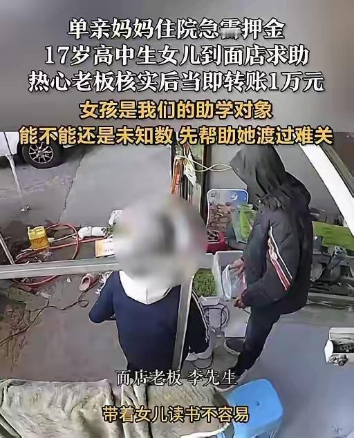 破防了!浙江,一单亲妈妈住院急需押金,17岁女儿跑到面店求助,谁知,老板明知还款没把握,依然给女孩转了10000元,老板:“先帮她渡过难关!”网友:这老板想不发财都难! 浙江一单亲妈妈突发重病,住院急需一笔押金,家庭的重担一下子压在了她的女儿身上。这个年仅17岁的女孩,面对突如其来的困境,心急如焚。她奔走在街头,四处求助,却始终找不到可以依靠的力量。最终,她来到一家面馆,希望借助老板的善心,渡过这个难关。 面馆老板是一位普通的中年人,平日里热心肠,见到这个瘦弱的小女孩满脸焦急,心里也不禁一震。女孩哽咽着讲述了母亲的情况,急需一笔押金才能继续治疗。老板听完后,心中也很难过,但他也知道,自己并没有太多的钱可以借出,更不用说还款的把握了。 然而,令人感动的是,老板没有犹豫,他当即决定伸出援手。虽然自己也知道借钱可能会带来风险,但他相信,帮助别人渡过难关,比金钱更有价值。于是,他转账给女孩一万元,告诉她:“先帮她渡过难关,有需要再说。”这份善意让人动容,也让网友们纷纷点赞。 网友们纷纷评论:“这老板真是好人!在这个物欲横流的社会,还能有这样的善心,真的难得。”也有人说:“老板这举动太暖了,谁说老板一定要赚大钱?善心才是真正的财富。”更有人感慨:“这才是真正的社会正能量,面对困难,大家都应该多点善意。” 事后,女孩带着这笔钱,成功为母亲缴纳了住院押金,母亲的治疗得以继续。她感激地说:“老板的善举让我看到了这个社会的温暖,也让我相信,只要心存善意,就一定会有希望。”这件事情也在网络上引发了热议,大家纷纷点赞这份纯粹的善意。 这位老板的善举,传递出的是人性最温暖的一面。在这个快节奏、压力重重的社会,像他这样用行动诠释善良的人,值得我们每一个人学习。或许,他的善举不会让他变得富有,但他用实际行动证明了,善心本身就是一种无价的财富。 这件事告诉我们:无论社会多么复杂,善良始终是最珍贵的品质。只要我们心怀善意,就能在别人最需要的时候,点亮一束希望的光。这位浙江的面馆老板,用他的一份善心,温暖了一个家庭,也温暖了整个社会。希望这样的故事,能激励更多人伸出援手,让这个世界变得更加美好。单亲母亲困境