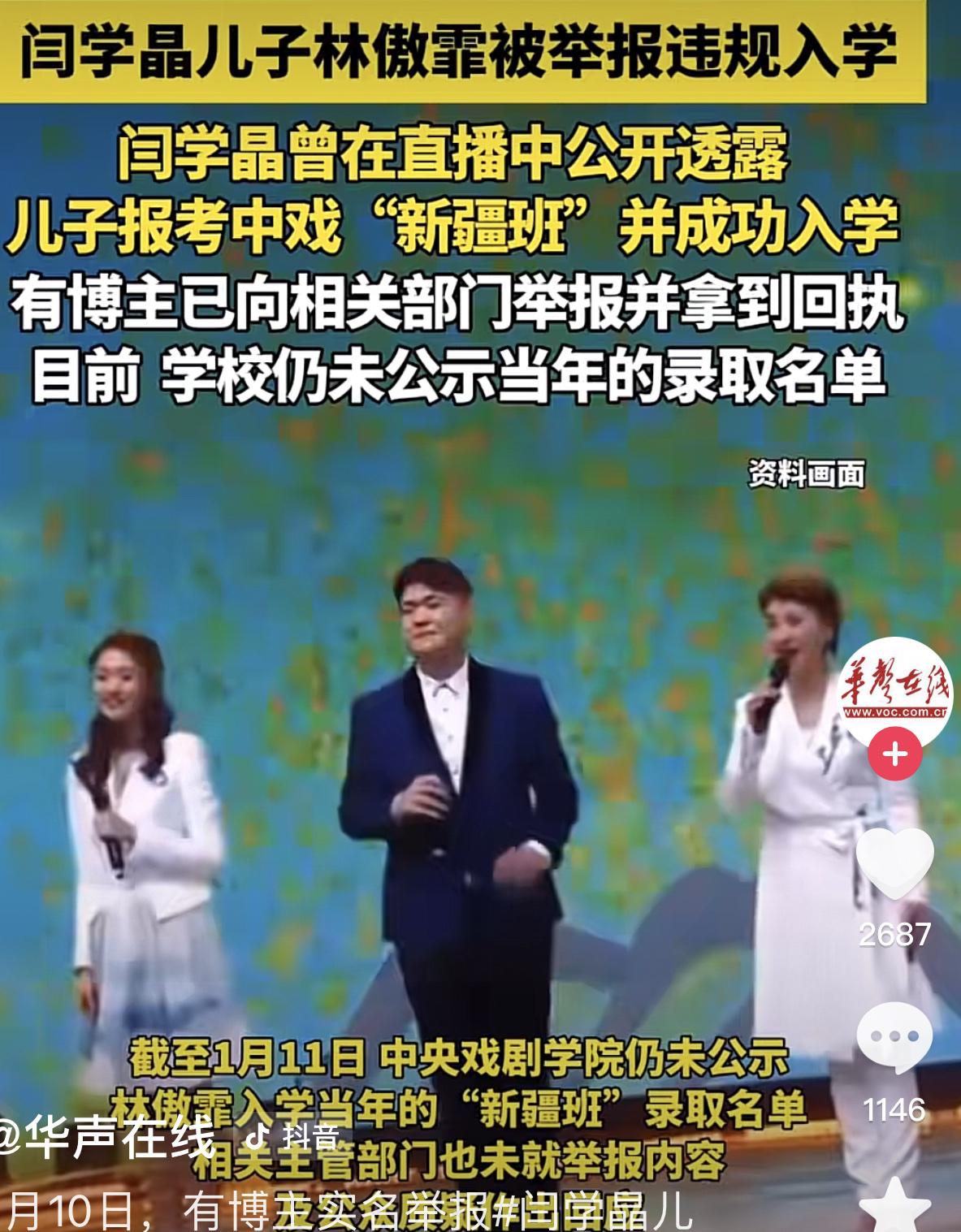 闫学晶:我不是认怂的人!你能咋的,你能咋滴吧! 真没想到这件事连锁反应会这么大,儿子不是新疆籍人也不是少数民族,更不在新疆读书,却霸占了新疆高考上大学的名额,现在连这事也给捅了出来。 儿子最终给查出来是非正常手段入学的,现在也没什么办法补救了,人家已经毕业都参加工作了,大不了也就罚点钱了事。 估计老闫应该不会做这种有违教育公平的事,她毕竟是什么文工团的,也就是说,是部队里的人,按理说不能做。可明明又是她曾自曝过,自己儿子曾经读过“新疆班”,这不是自己挖坑埋吗。 (来源:华声在线) 人不管你到了哪个层次,一定要稳重,说话大方,过得了自己更要过得了别人,任何时候都不要嘚瑟。看来,老闫现在连孩子的工作都得重新掂量,能不能在娱乐圈混下去了,这真是一荣俱荣一损俱损,太可惜了。