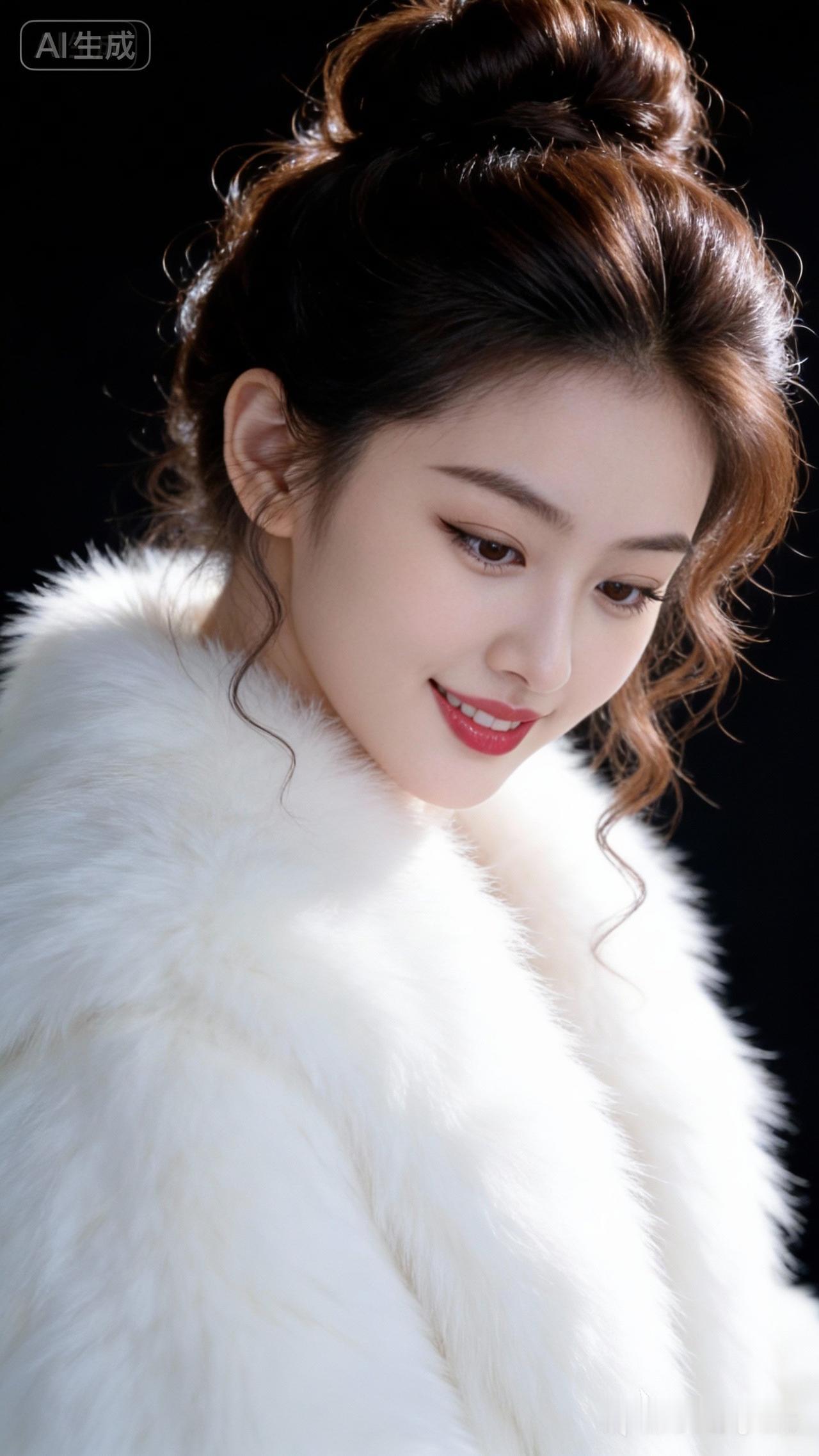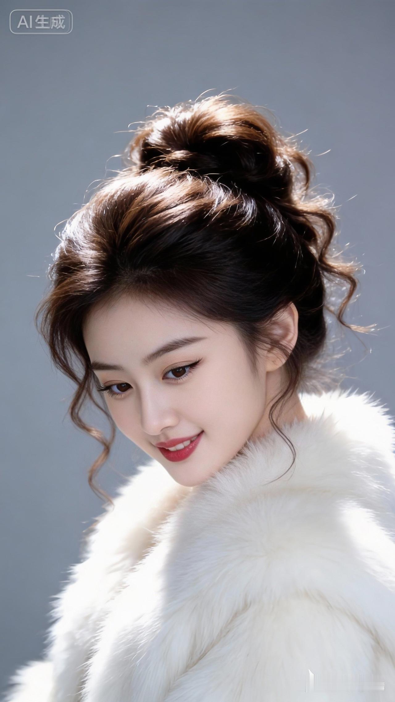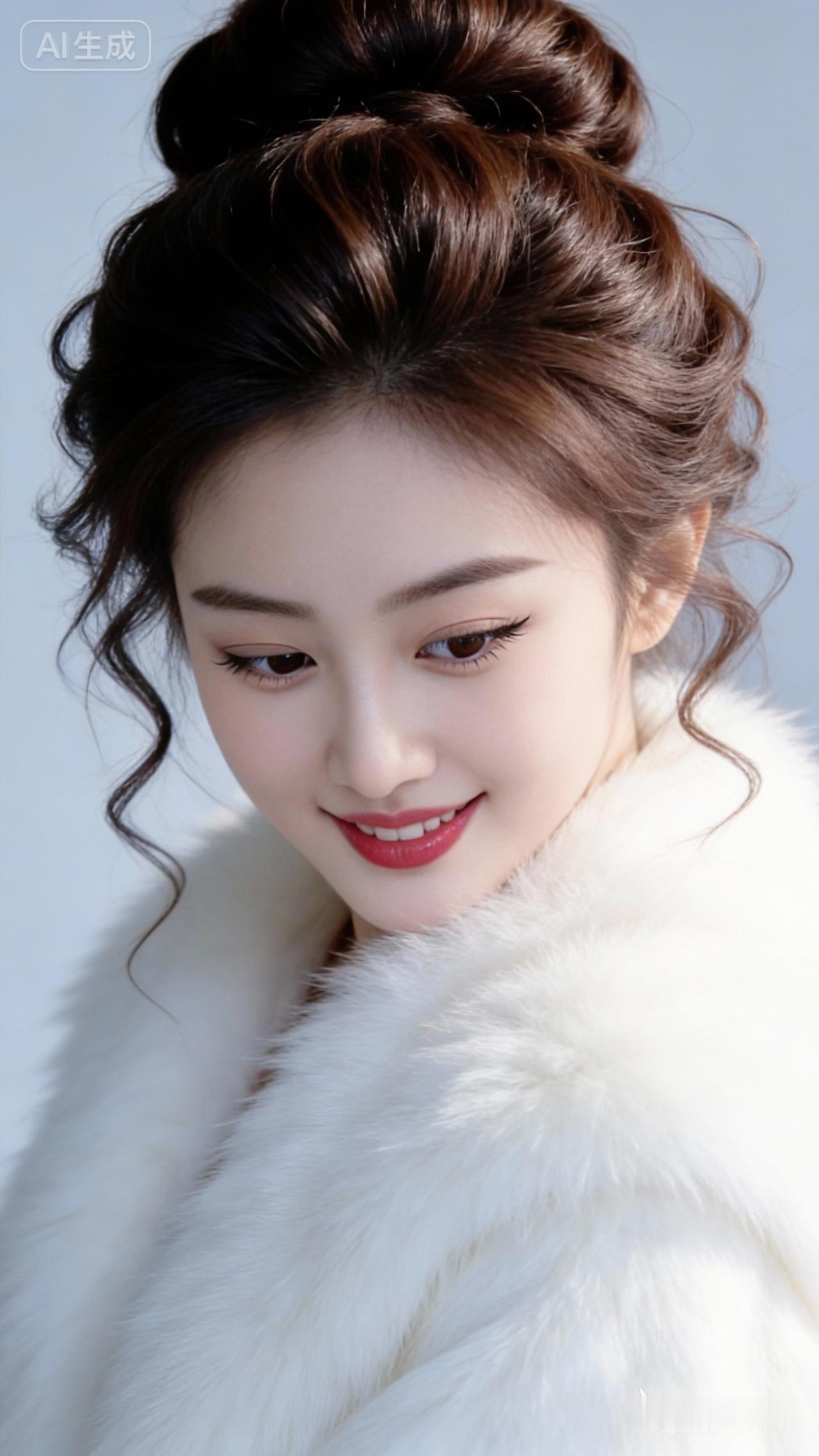 一位20岁容颜清丽脱俗的美人,微笑含情脉脉看着镜头