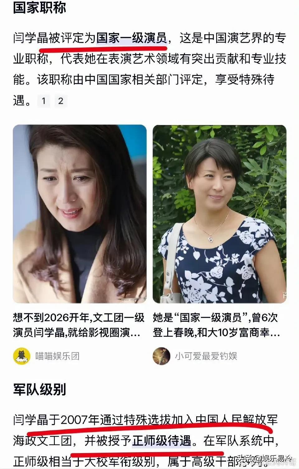 闫学晶太牛了,她不是普通的二人转演员,你想不到她在业内居然有这么强大的背景和不低的地位,难怪被称为“人民艺术家”,难怪这么有底气嘲讽“质疑她的网友”是“酸黄瓜”。 但是,荣誉和地位都是人民给的,如果脱离了人民路线,从群众中来再回头嘲讽群众,那么她注定会被人民群众抛弃!