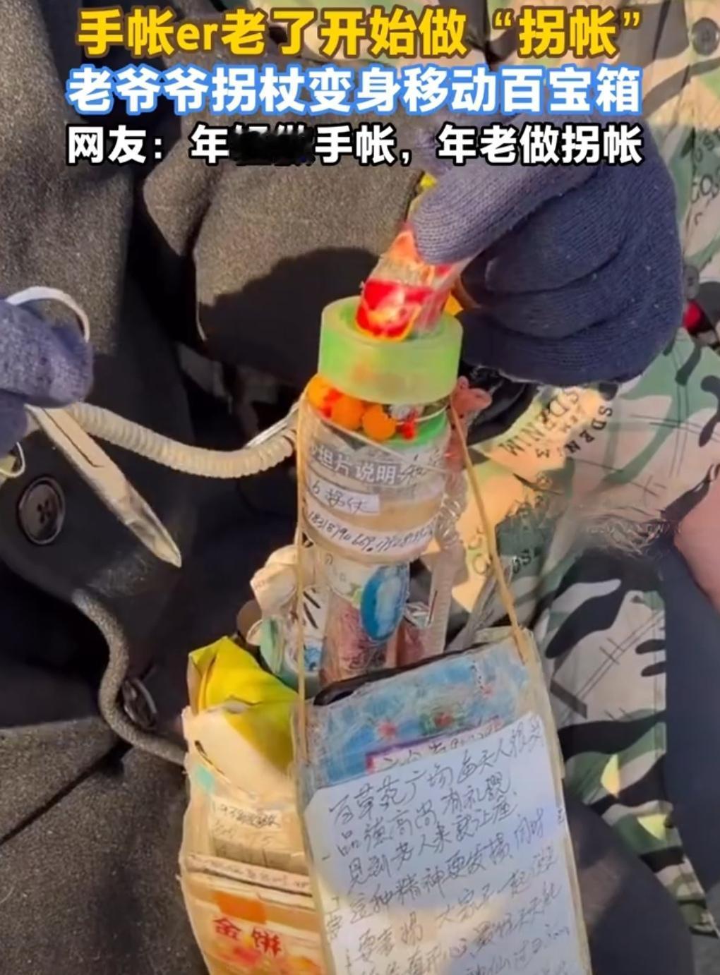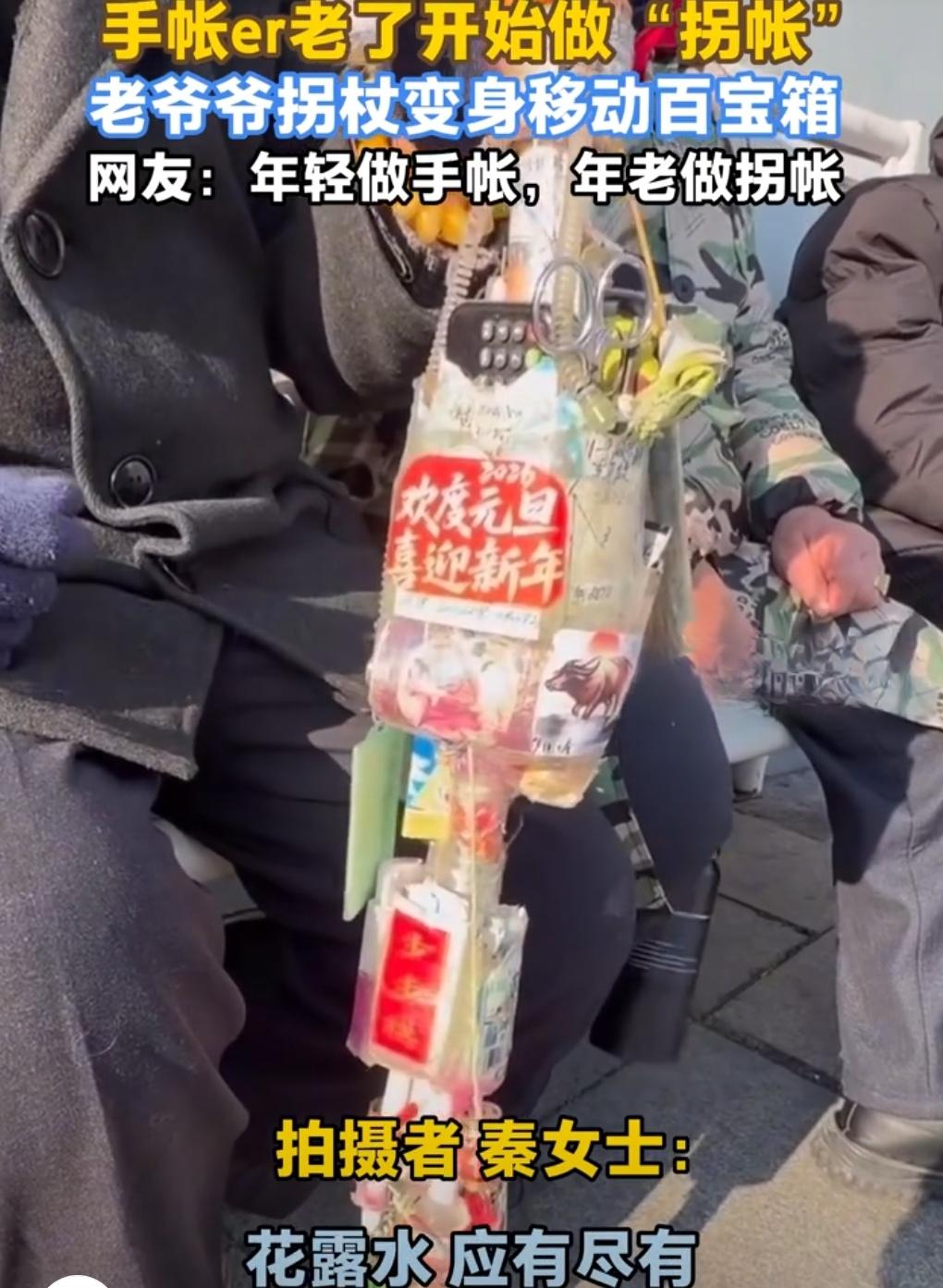 上周日早市,常州的秦女士撞见位拄拐的银发奶奶。拐杖木头纹路被磨得发亮,最绝的是柄上密密麻麻贴着东西——剪刀刃朝内缠着透明胶,花露水小瓶装在饮料盖粘的卡座里,连扇叶包着布的小风扇都用扎带固定着。"买菜时剪个绳,走热了扇两下,下雨防滑垫不够就补点胶。"奶奶笑着展示,拐杖底部还套着剪开的自行车胎,纹路比新买的防滑垫还深。 这段15秒的视频当晚就火了。网友发现拐杖挂钩上还挂着钥匙串、布袋,活像会走路的百宝箱。有年轻人翻出自己的手账本:"原来我们贴贴纸,奶奶们贴生活啊!"拐帐话题下,有人晒出爷爷用象棋棋子装饰的拐杖,有人分享外婆在拐杖刻的"防丢诗",原来老辈人的浪漫,都藏在磨得发亮的细节里。 比起商场里千元智能拐,奶奶的"手工定制款"戳中了最朴素的需求。社区王阿姨说:"去年女儿买的四脚拐,重得像搬板凳,哪有这木头拐轻便?"拐杖中部磨出的凹痕,正是老人常年挎菜篮的印记;缠满胶布的握把,恰好避开了医院同款的冰冷感。就像网友说的:"我们怕老人摔着,老人怕拐杖丢了体面。" 这让我想起养老院护工的话:"最好的拐杖不是贵的,是老人愿意天天摸的。"商场里智能拐有GPS报警,却少见奶奶拐杖上的"便民工具箱";四脚拐稳如泰山,却不如自制的自行车胎防滑垫合脚。老人改造的不是拐杖,是把"不得不拄"的无奈,变成了"我能搞定"的骄傲。 现在奶奶的拐已经成了小区网红,常有老人凑过去研究:"你这小风扇哪淘的?""卡座用502还是热熔胶?"就像年轻人用手帐记录青春,他们用一辈子的生活智慧,把拐杖变成了会呼吸的"生活手帐"。那些被我们嫌弃的"老土改造",恰恰是他们对抗衰老最倔强的仪式感。 那天秦女士注意到,拐杖顶端刻着极小的"1953"。或许每个老物件里,都藏着比说明书更动人的故事。当我们讨论适老化改造时,或许该听听奶奶们的心声:比起标准化的"安全设计",他们更想要能插花、能挂钥匙、能装下半生烟火气的——那根独一无二的拐。毕竟,最好的适老,从来不是让老人适应工具,而是让工具接住他们的人生。 用心品味生活,才能发现美,虽然是九旬老人,但他必存大爱,处处为别人着想,你认为老人的行为值得认可吗?欢迎来评论讨论。
