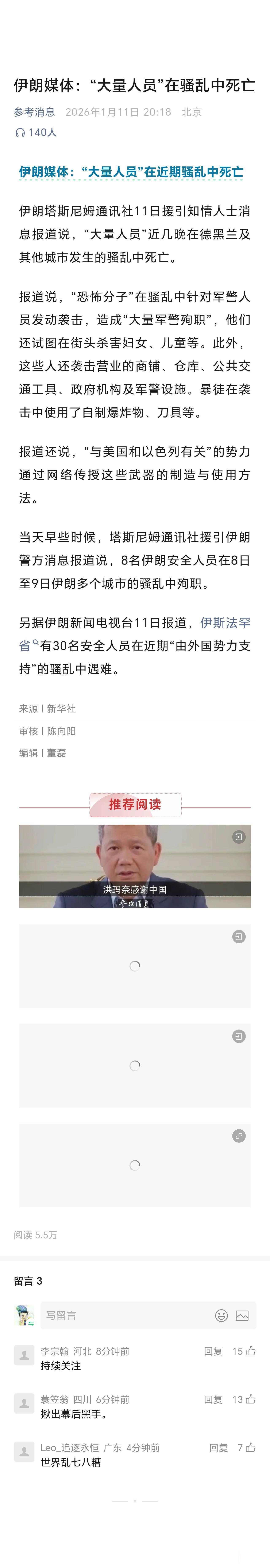 哈梅内伊呼吁伊朗人民团结 称“特朗普的双手沾有伊朗人的鲜血” 少数伊朗人竟相信他