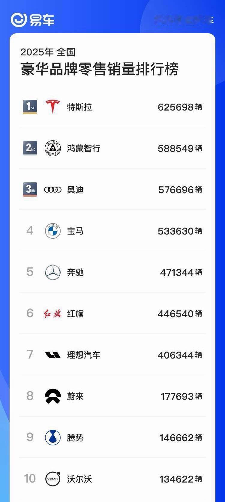 易车的榜单竟然没把小米汽车算进豪华品牌,2025年的小米汽车在你心目中到底算不算豪华品牌?[思考] 小米41万的销量,无论如何也是不容小觑的,最低车型的售价是21.59万元,这个起售价格比BBA的最低车型起售价格还要贵。 毋庸置疑,从价格方面来说小米确实是豪华品牌,从销量上来看,小米也是做到了非常高的水平。 各位是怎么看的?欢迎评论区留言。