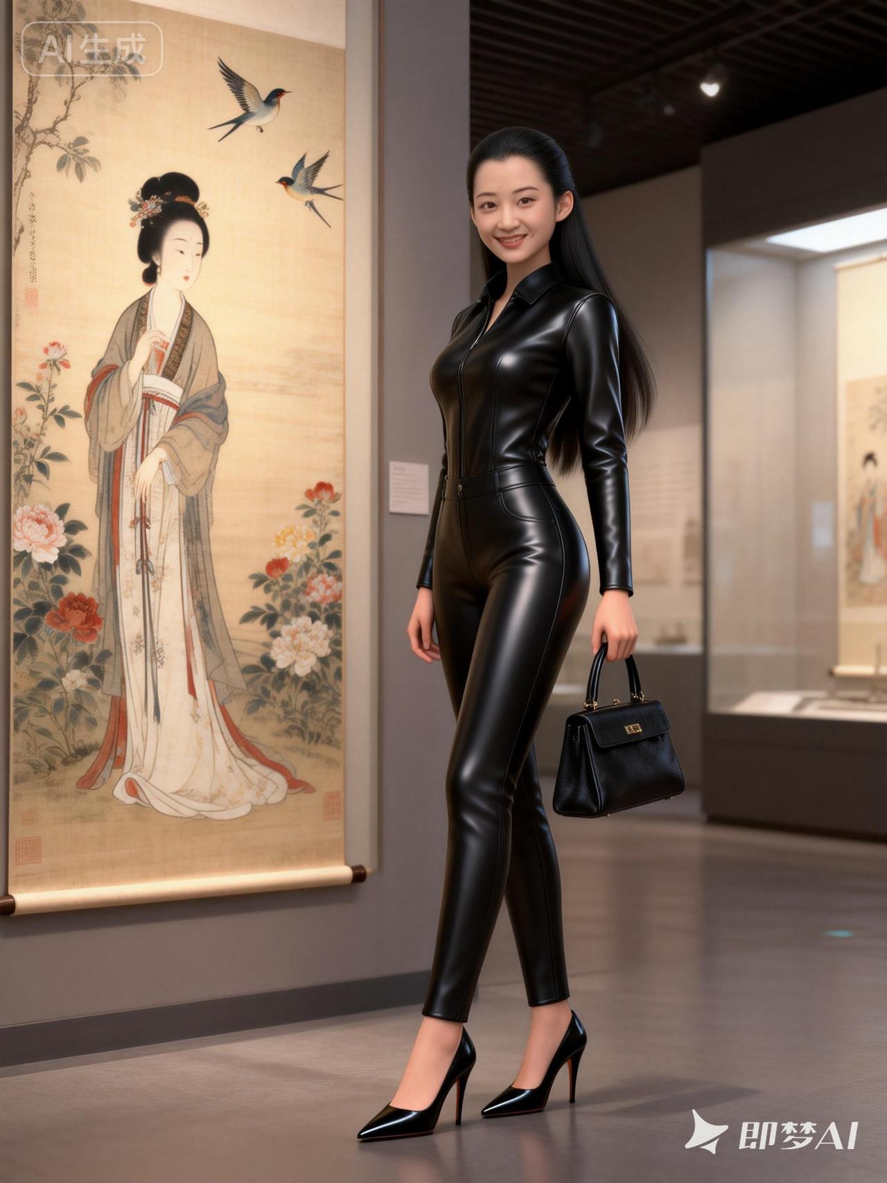 优雅黑皮衣,博物馆里的时尚秀