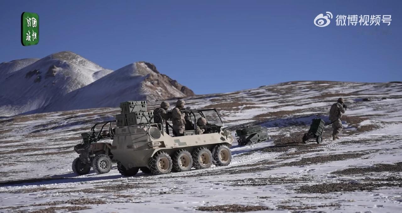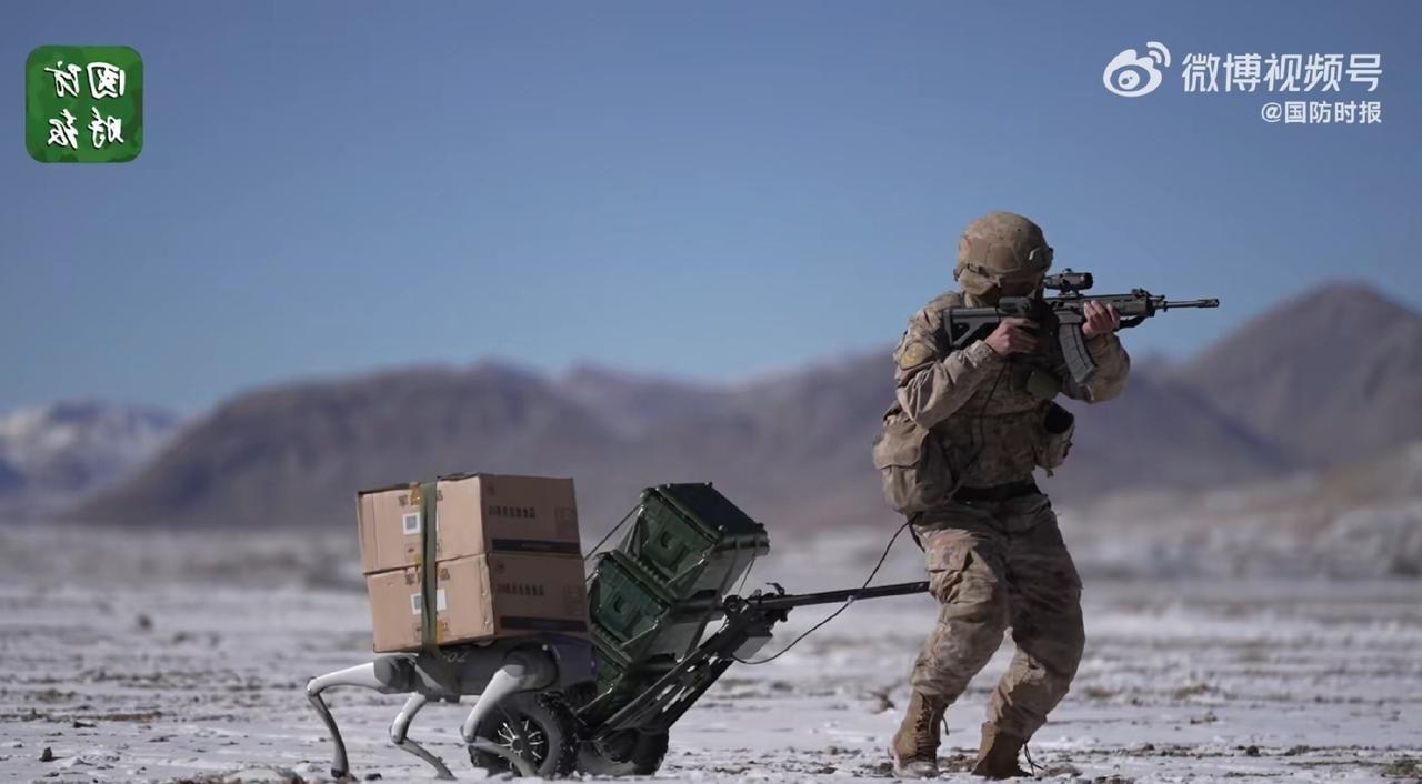这是在五千三百米的喀颜昆仑高原上,我军为了保障一线的补给,你看都想了多少办法!能够送货的有机器狗、单兵电动拖车、履带式无人车、全驱山猫、多旋翼无人机、铰接式履带运输车,什么样的地形地貌,都能把弹药补给送上去。