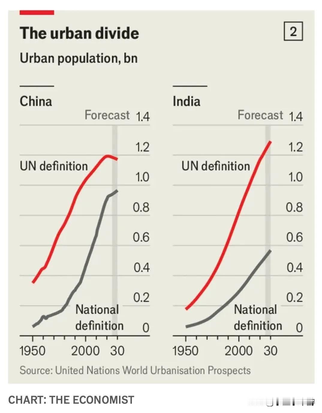 中国不仅总人口数量在减少,城市人口规模也已达到峰值。按照《经济学人》依据联合国采用卫星影像和人口密度来界定“城市/城镇”的标准,中国的城市人口实际上在2021年就已达到顶峰,后续将逐步减少。 这种算法表明,中国实际的城市化率超过了83%,远高于官方公布的67%。也就是说,中国并非还处于城市化进程中,而是已经高度城市化,自然也就没有太多的增长空间了。随着总人口持续减少,城市人口的绝对数量也难免会下降。 这一转变,给房地产行业和城市治理都带来了压力。许多对住房需求持乐观预期的观点,原本是寄希望于更多农村人口进城,现在看来可能要落空了。住房需求或许会来自三个方面:城市内部的人口重新配置(从小城镇向大城市流动)、老旧房屋的更新换代,以及居住空间拥挤的家庭对更大居住面积的追求。 城市人口达到峰值,并不意味着城市经济发展就此停滞,但它确实标志着一个依靠人口不断增加来推动增长的时代已然结束。 (数据源自网络,仅供参考)