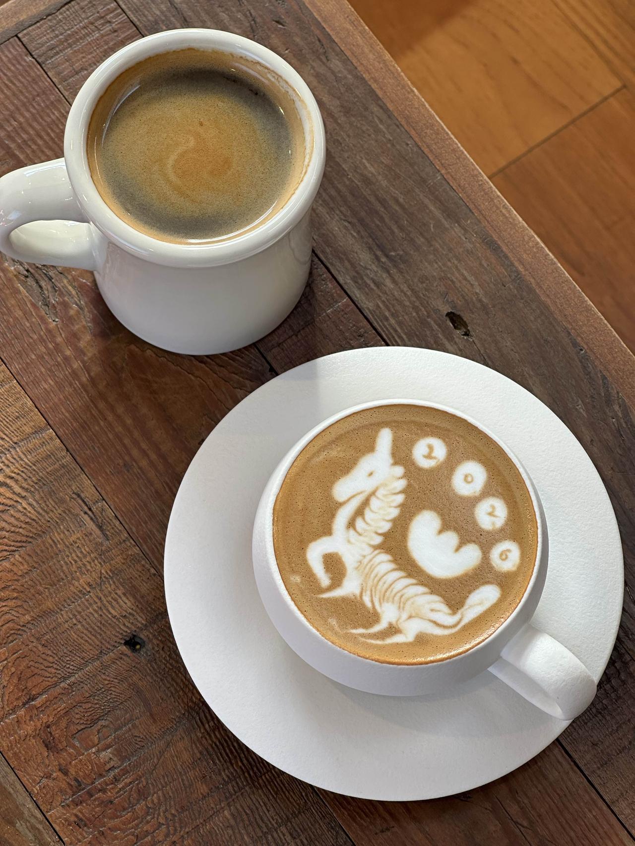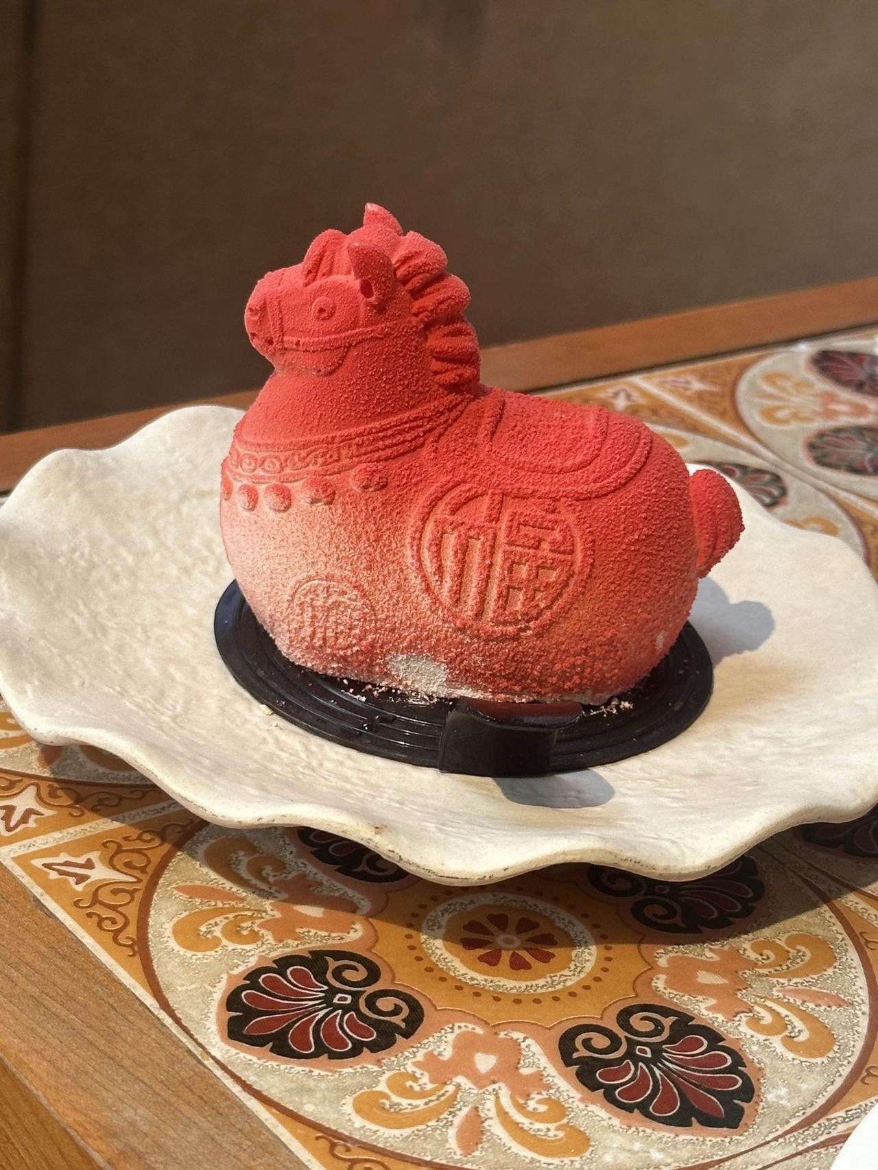 咖啡师的拉花惟妙惟肖,一匹英姿飒爽的马,很有朝气。新品白桃茉莉花甜品也很好吃,清爽甜美,造型也特别可爱,有点胖有点萌,红色有年味。 咖啡师小哥哥手艺很好,午后的店里阳光明媚,晒在身上真舒服,一杯咖啡很治愈。路边的停车位没找到,园区内有停车场,也很紧俏,先到先得,