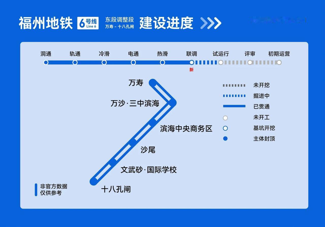 福州地铁12月在建线路建设进度: 福州地铁6号线东段调整段启动联调联试 福州地铁2号线东延伸段一期魁-中区间右线洞通 福州地铁2号线东延伸段一期下德-马江渡-船政文化城两区间均已双线洞通