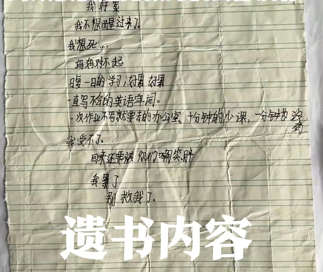 江苏这名12岁女孩,太可惜了,长得很可爱,写下遗书,就吞药离开了!冥冥之中,她生前的玩伴,一猫一狗,不久也离世了,伤心的妈妈去坟前看望女儿,夏天,坟前开满雏菊,寒冬,女儿坟前飞舞着几十只蝴蝶。 妈妈哭得不能自已,说是女儿给自己的惊喜,飞给妈妈看的。 坟里的这个女孩,六年级学生,父母离异后轮流抚养,她语文拔尖爱写小说。 她在遗书中说,“日复一日的学习,好累好累,一直不会写的英语单词,一次作业不写就要去的办公室”,还提到被嘲笑胖! 压垮她的,是学业压力、社交嘲讽和无人倾诉的孤独 事发当天,别人都以为她肠胃炎在家休息,晚饭还吃了一碗饭,就说自己有事便回房写作业,没多久,家人听到楼上异响,推门却发现孩子面色青紫,垃圾桶里,还躺着刚开封的100粒心脏病药空瓶,遗书就压在散落的英语作业下。 在2018年父母离异后,女孩由双方轮流照顾,转学前还是优秀少先队员,转学后英语基础薄弱的短板暴露,十余天里被老师叫去办公室三四次,同学私下还喊她胖妞。 这些事,她从没跟家人提过,就连母亲在外地做手术时,她还乖巧叮嘱妈妈注意身体,谁都没察觉她心底的绝望 事发后学校曾和家属签《调解协议》,支付2万元人道主义慰问金,协议写是突发疾病身亡,但母亲事后反悔并起诉了学校和英语老师,结果在2025年10月,一审被驳回,因为老师的行为属正常教育,因果关系难以认定。 如今母亲已准备提起二审,只盼能讨一个说法。 这个12岁女孩的悲剧,从来不是不会英语单词这一件事,而是学业压力、同伴嘲讽、家庭变故和心理疏导缺失的层层叠加,那些藏在笑容里的崩溃,那些没说出口的委屈,最终成了压垮她的最后一根稻草,实在令人痛心。 遗书里,她说:“我好累,不想醒过来了,妈妈对不起。”