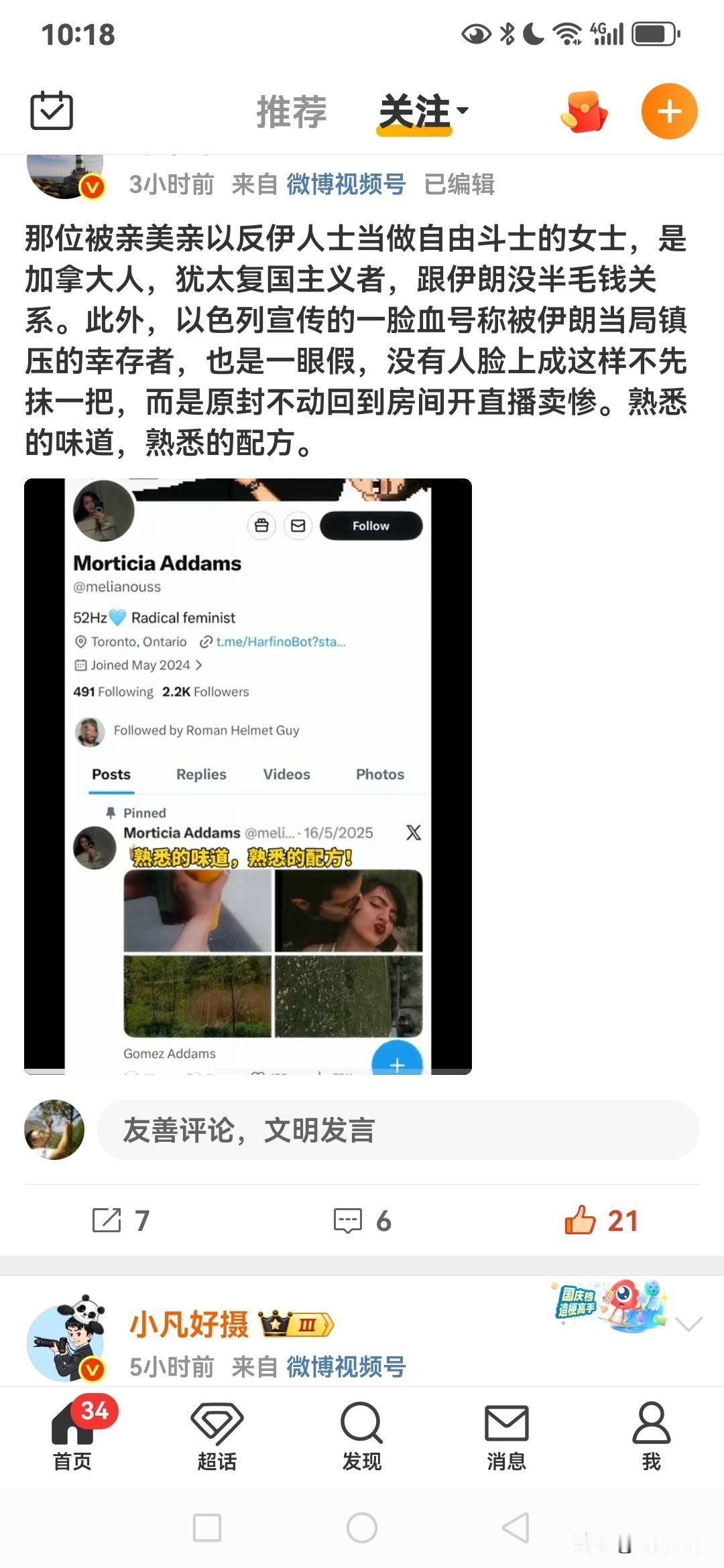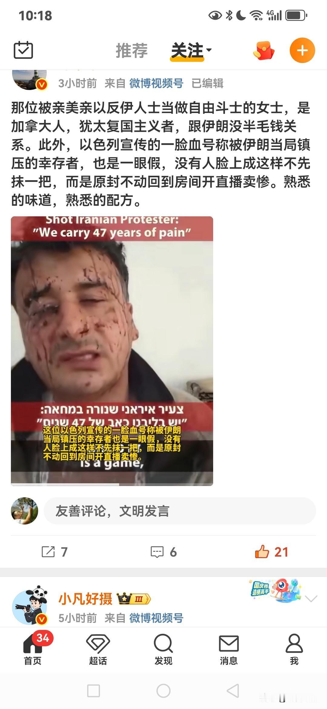 那位被亲美亲以反伊人士奉为自由斗士的女士,是加拿大人,同时也是犹太复国主义者,与伊朗毫无关联。另外,以色列大肆宣扬的所谓遭伊朗当局镇压的幸存者,看着就很假。哪有人脸上血迹斑斑却不先擦拭一下,而是直接回房间开直播博同情。还是那熟悉的套路,熟悉的手段。谎言又被戳破了,以犹什么反应呢? 以色列犹太主义 犹太复国主义者 巴勒斯坦自愿者 犹太复国主义 犹太极端主义 伊朗女性自由 伊朗怒指美以罪