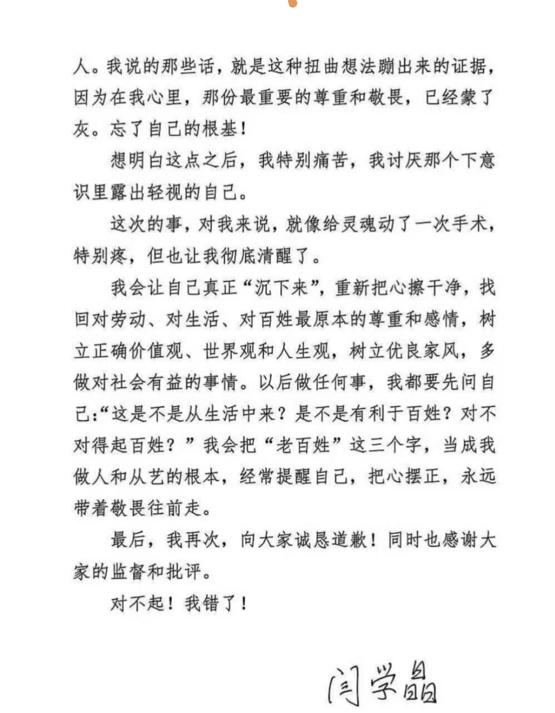 闫学晶发长文道歉 !! 事情发酵几天后,品牌方解约,闫学晶这才发文致歉…… 她不是知道错了, 她是怕舆论越来越大挣不到钱了!已经有品牌跟她解约了, 账号都被禁止关注了 。 另外,感觉这文像ai写的,给指令里面输入党政风/接地气语气就是这样的,一模一样。我之前给我弟帮补作文就是输入这样:润色生活化的指令拿ai跑出来,真的味儿特别正。
