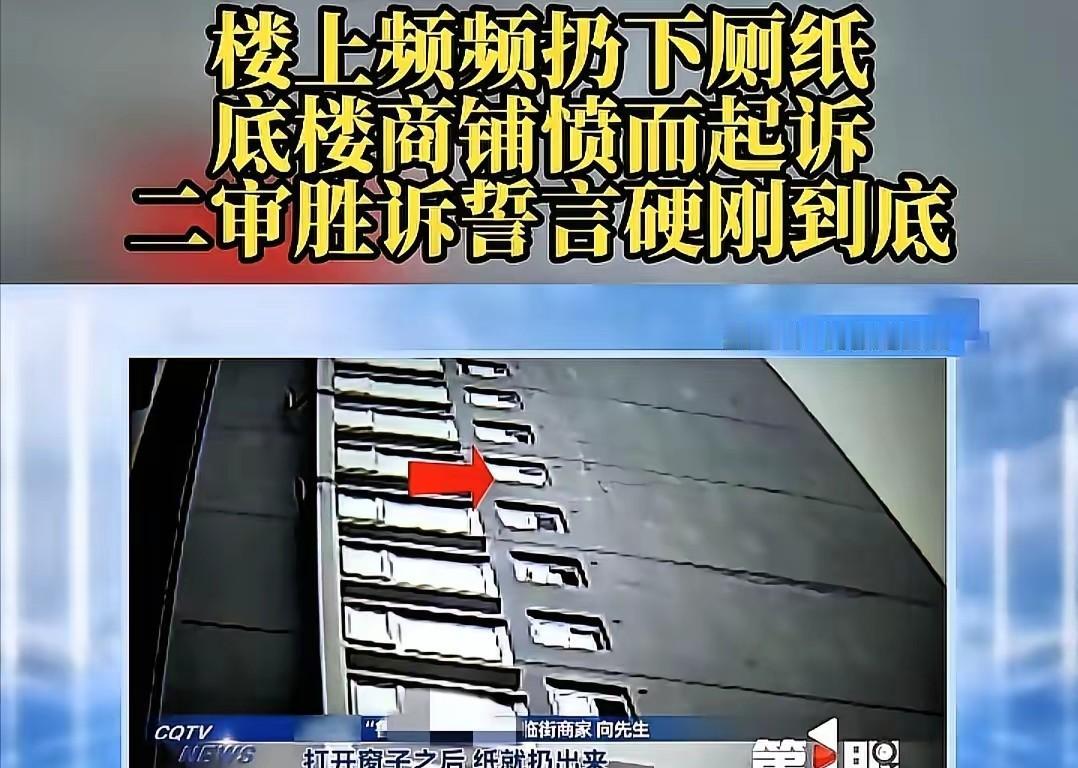 最近这事在渝北闹得挺大。向先生开个面馆,从开业起门口天天有带脏东西的厕纸飘下来,客人一看掉头就走。他忍不了,装了监控三个月,终于拍到是五楼一个四十多岁的男人扔的。找上门去,对方冷笑一句“不就是几张纸”直接关门。 向先生气不过,直接告上法院。一审输了,说证据不够。他没放弃,把账本、客流失记录全翻出来上诉。二审结果反转,法院判那人必须书面道歉,赔3000精神损失,外加2000间接损失。可直到现在,人早搬走了,道歉和钱都没见到。 这案子看着小,可真要没人管,以后谁家楼下都可能变垃圾场。向先生赢了判决,但执行还是个问题。