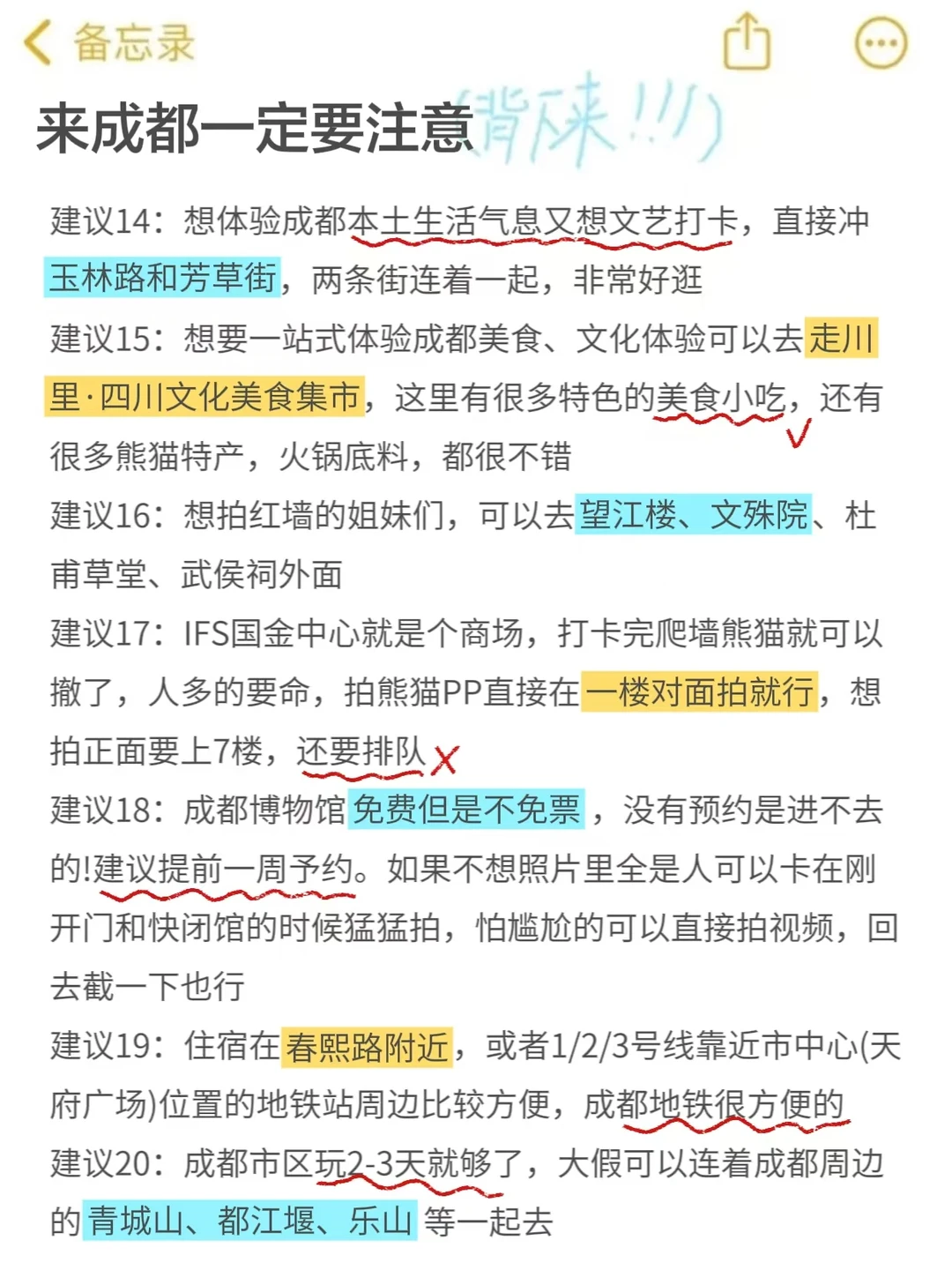 在闺蜜监督下熬夜做的成都攻略…满意到睡不着觉😊知道她要来成都,熬夜整理了成都攻略,她说太感动了吧😭😭😭😭😭