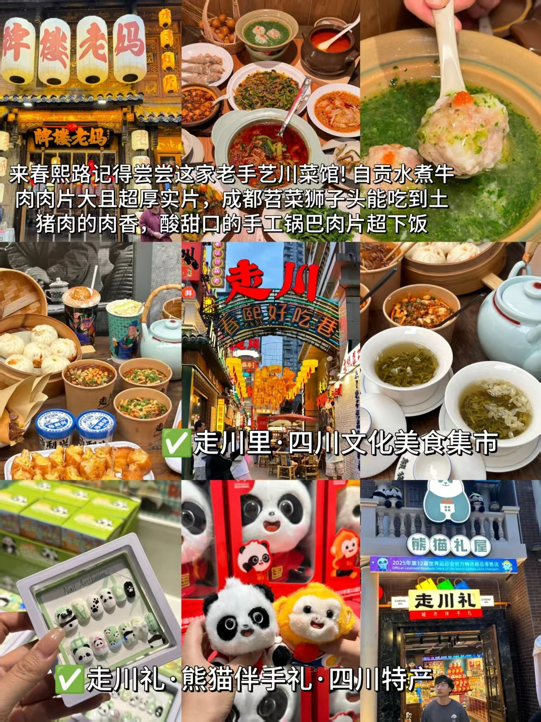2️⃣熊猫基地-东郊记忆-文殊院-人民公园-宽窄巷子-奎星楼街/抚琴夜市