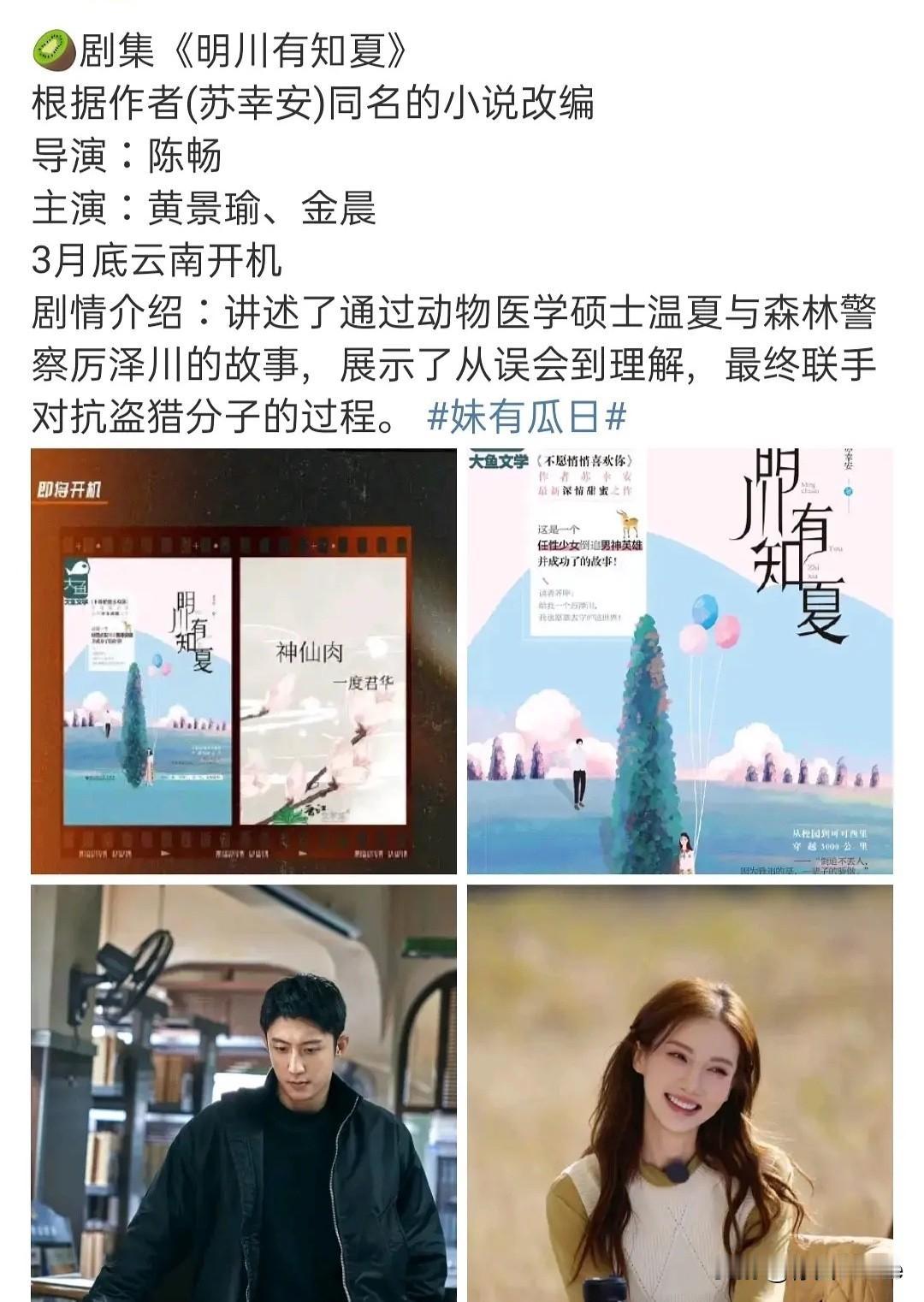 1月11日,黄景瑜、金晨合作《明川有知夏》,3月底开机,内娱制作公司这两年找男女主的标准,无论是定女选男,还是定男选女,都是在选择的那位cp圈内找,很大程度的避免了男女主没有cp感这件事,也很大程度的增加了该剧的热度跟话题度,一举多得! 黄景瑜金晨去年年中刚在综艺节目中组了cp有了绯闻,今年年初就有了两人的合作! 不得不说内娱影视寒冬还是分人!制作公司也不是没钱,只是花钱的时候更加谨慎,多重加持确保不亏!黄景瑜