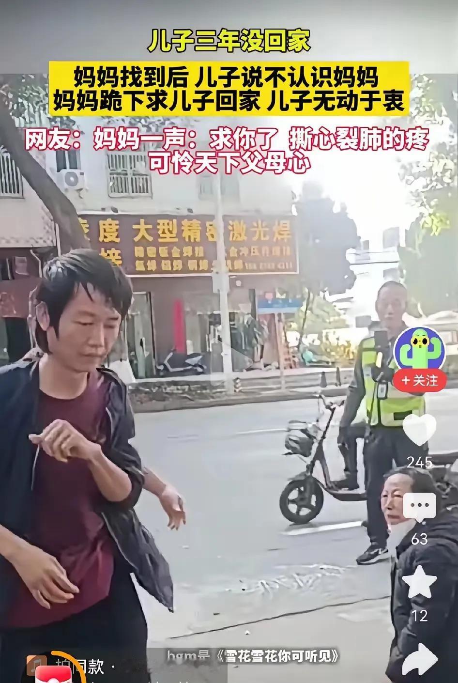 一男子连续三年失联,妈妈费尽心力找到他,满心欢喜想接他回家,可他却直言“不认识”,哪怕妈妈当场下跪哀求,也坚决不愿回头。 谁会平白无故抛弃父母、逃离家庭?背后肯定藏着难以言说的伤痛。大概率是曾经被父母逼到绝境,或是在家感受不到温暖,才狠心斩断所有联系,宁愿独自漂泊也不回头。都说“家是避风港”,可如果家变成了让人窒息的牢笼,孩子只能选择逃离。 父母总以为“为你好”,却忘了孩子也有自己的底线。过度的控制、不分青红皂白的指责、把自己的意愿强加于人,这些看似“爱”的行为,其实都在慢慢推开孩子。做事留一线,别把孩子逼到退无可退,否则等他们心冷了,再怎么挽回都没用。 亲情本该是最温暖的羁绊,而不是互相伤害的枷锁。希望所有父母都能多些包容和理解,少点逼迫和控制,让家真正成为孩子累了、倦了时愿意回头的退路。你们觉得男子为何不愿认亲?