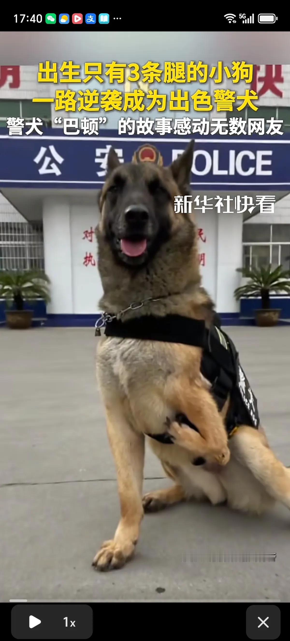 都不看好你,可你偏偏最争气。警犬巴顿出生时发育不良,只有三条正常的腿,曾被医生建议“安乐死”,后来被送养,被领养后调皮捣蛋,很能闯祸打架,又被送回了警队。 巴顿展现出了极强的警犬天赋,咬合力很强,除了先天发育不良问题,各方面都具备最优秀的警犬特质。在训导员李晓东的训练下,努力克服了重心不稳、频繁摔跤的困难,通过了警犬认证考核,成为全国首只有正式编制的三条腿防暴警犬,还获得了“不屈斗士奖”,参与过走失人员搜救等任务,与腿伤的李晓东相互治愈、并肩作战,