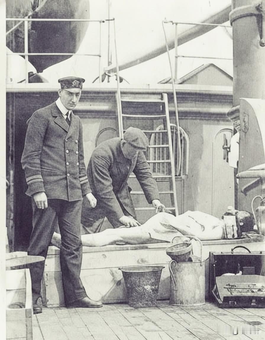 这张历史照片记录了泰坦尼克号沉没后打捞工作中的一个庄严肃穆的瞬间。照片显示,一名身份不明的遇难者正在电缆船“麦凯-贝内特号”(CS Mackay-Bennett)的甲板上进行遗体处理,准备下葬或进行防腐处理…… 1912 年 4 月 23 日,泰坦尼克号灾难后的救援工作迎来了一个令人悲痛的里程碑,铺设电缆的船 CS Mackay-Bennett 从冰冷的大西洋海水中打捞出了 128 名遇难者。 这艘船在泰坦尼克号于4月15日沉没后几天就被派往现场,是最早抵达灾难现场的船只之一。船员们被惨重的损失震惊,开始了从海中打捞遗体的艰辛工作。超过1500名乘客和船员遇难,麦凯-贝内特号的殡仪员约翰·斯诺不知疲倦地工作,对遗体进行登记和辨认,但许多遗体多年后仍无法辨认身份。这艘船的到来标志着一项持续数周的艰苦打捞行动的开始。 船上仅携带了足够处理70具遗体的防腐用品,这鲜明地提醒人们,救援行动对这场灾难的规模准备不足。为了弥补物资短缺,救援人员从另一艘参与救援的船只“撒丁岛号”上调集了额外的防腐用品。船员们小心翼翼地处理着遗体,其中许多遗体由于长期暴露在冰冷的海水中而高度腐烂,这给他们带来了巨大的精神压力。 有些遗体只找到了一部分,许多遗体的身份始终未能完全确认。这项艰巨的任务成为灾后重建过程中最令人痛心的环节之一,船员们不仅要承受巨大的身体压力,还要承受沉重的精神负担。 当麦凯-贝内特号于4月30日返回哈利法克斯时,这座城市已经开始努力应对这场巨大的损失。随着灾后重建工作的继续,泰坦尼克号的悲剧深深触动了哈利法克斯人民,他们中的许多人都有亲人在这场灾难中丧生。 “麦凯-贝内特”号的努力成为泰坦尼克号历史上的一个重要篇章,因为它打捞出的遗体残酷地提醒人们这场灾难背后惨重的人员伤亡。 4月23日这一天标志着这场灾难历史上的一个关键时刻,凸显了所有与泰坦尼克号悲剧相关的人们所感受到的深深悲痛和毁灭性打击。